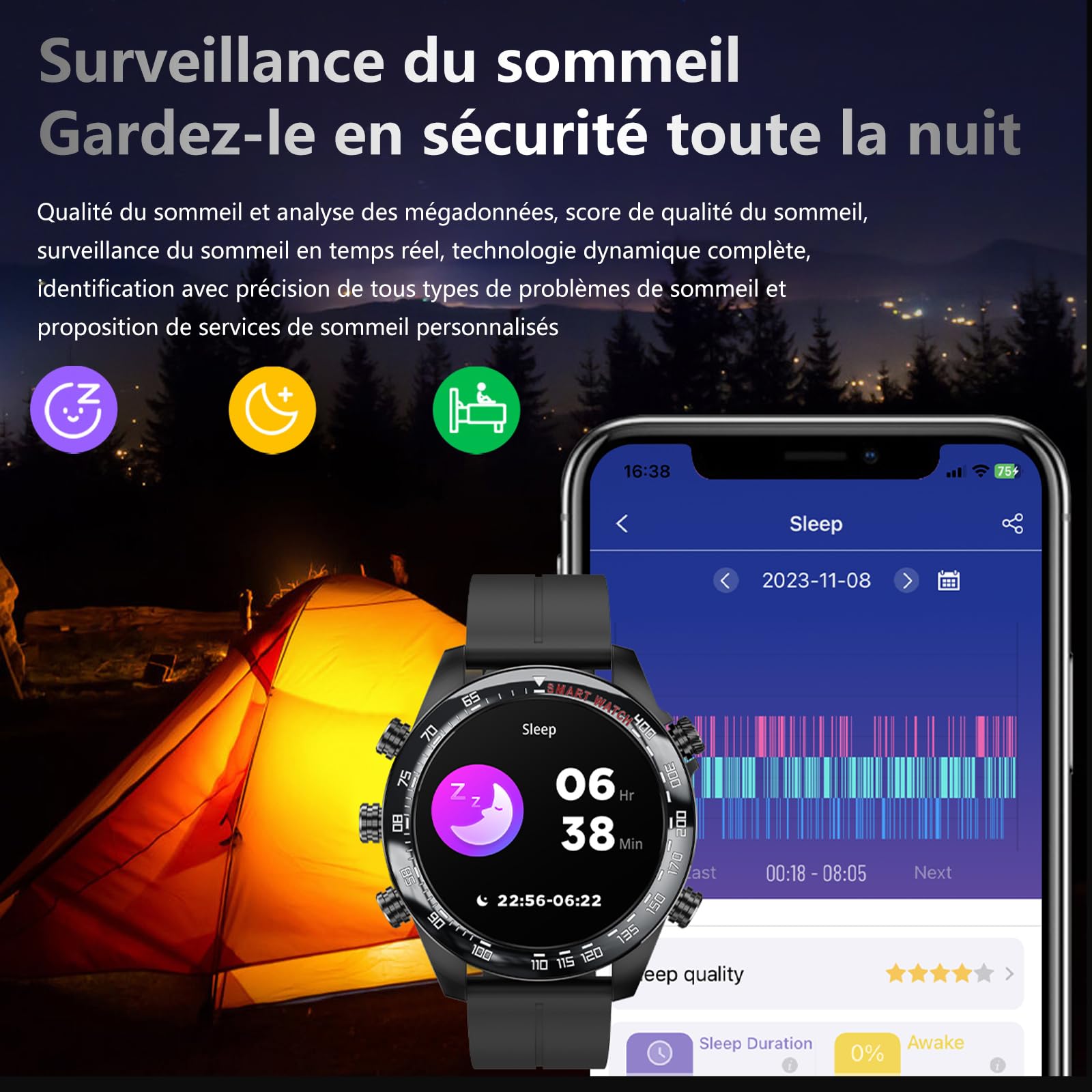 ✅【Mode de surveillance de la santé plus précis avec balayage optique】. 【2025 Nouveau design pour plus de confort & IP68 étanche】BENYAR SMART 2025 La nouvelle EF2 PRO améliore l'apparence carrée distinctive avec un boîtier plus mince et plus léger et un look plus futuriste avec ses surfaces irrégulières dures et robustes,Le bracelet en silicone souple et lavable et le bracelet en nylon tressé s'adaptent mieux et sont plus agréables à porter. Performance étanche IP68, vous permettant de faire face facilement à tout environnement. pendant l'entraînement. Cela réduit considérablement le nombre de recharges. Les 5 eilleures ontres connectée électrocardiograe (ECG) de 2023... ✅【Montres intelligentes hybrides & compatibilité】Vous pouvez découvrir plus de fonctions de la smartwatch EF2 PRO outdoor, comme par ex : Prévisions météorologiques, trouver un téléphone portable, interrupteur de musique, réveil, assistant vocal, réglage de la luminosité et plus encore. La montre de sport EF2 PRO dispose de 20+1 modes de sport au choix, dont la marche, la course en plein air, le vélo, la natation, le yoga, le basket, le tennis, la randonnée, le saut en longueur, le golf, etc. ✅【Écran HD 1,91&3 bracelets interchangeables】 : Dotée d'un écran large et éclatant, facile à lire même au soleil, cette montre allie élégance et efficacité énergétique pour une autonomie prolongée. Montre Garmin Homme Montre Connectée Homme Repondre Appel - Smartwatch Sport 2,0 Pouces Étanche Écran Tactile Bracelet Connectee Avec Moniteur De Sommeil Fréquence Cardiaque Podomètre Fitness Tracker Pour Android IOS Compatible Android IOS Une montre intelligente pour homme dotée d'un moniteur de fréquence cardiaque utilise des capteurs optiques pour récupérer des données en temps réel. Il vérifie... (Fonction activée dans l'application FitcloudPro). Vous pourrez également lire les changements de votre état de santé sur la montre pendant 7 jours. Le EF2 PRO utilise une puce de capteur de haute précision comme base pour la surveillance dynamique de la fréquence cardiaque 24h/24, ainsi que pour la surveillance de l'oxygène dans le sang et du sommeil. En attendant, la smartwatch est compatible avec la plupart des smartphones, y compris Android 5., 0 & iOS 9., 0 et plus, Si vous avez des questions sur les montres, n'hésitez pas à nous contacter. Montre Connectée Homme, Appel Bluetooth, Écran 1.39 Tft, Moniteur ✅【Alertes d'appels et de messages Bluetooth en temps réel】. ✅【Écran AMOLED et 200+ Cadrans】BENYAR SMART EF2 PRO montre intelligente pour homme utilise un écran Amoled 2,13'' avec mode d'affichage tout temps, écran extérieur en verre anti-explosion, luminosité jusqu'à 1200nit, résolution 410 * 502, affichage clair dans n'importe quel environnement. ✅【Activez votre sport en un seul clic】Vous pouvez activer votre entraînement quotidien en un seul clic via le bouton d'entraînement sur le côté gauche. Vous pouvez porter la montre à tout moment tout en la gardant entièrement chargée.