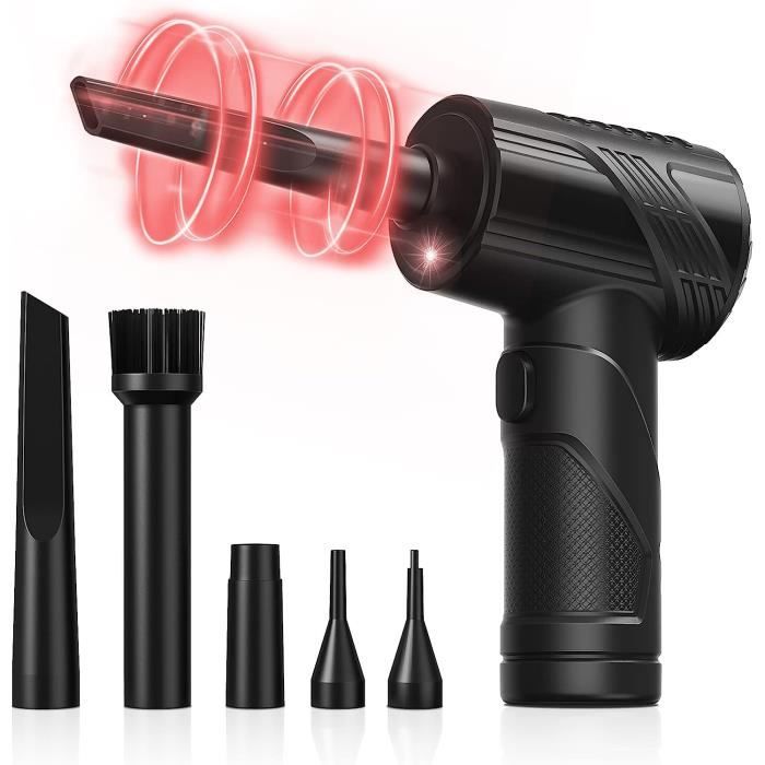 Réglage de la vitesse de 25 000 à 130 000 tr/min, le ventilateur sans fil s'adapte à toutes les applications, des appareils sensibles au nettoyage en profondeur. Dépoussiéreur à air comprimé – Nettoyeur de clavier électrique Durable et réutilisable : contrairement aux boîtes d'air comprimé jetables, ce souffleur à poussière sans fil est rechargeable et donc à la fois économique et respectueux de l'environnement. Souffleur Air Comprimé électrique Dépoussiéreur électrique 100 000 Tr/min, Mini Ventilateur Turbo Led Ecran Pc Vitesse réglable individuellement avec écran LED : grâce au réglage de la vitesse à 100 niveaux, vous pouvez nettoyer les appareils sensibles en douceur ou utiliser toute la puissance pour la poussière tenace. L'écran LED vous indique la vitesse de rotation et le niveau de batterie en temps réel pour un contrôle total Dépoussiéreur électrique à air comprimé 130 000 tr/min, 3 vitesses... Faites confiance à nous : garantie de 24 mois et support 24h/24, 7j/7, avec notre garantie sans souci, nous vous offrons un remplacement facile et des solutions rapides dans les 24 heures. Parfait pour les voyages, le bureau, la voiture et la maison. Souffleur d' Portable Plumeau électrique, Dépoussiéreur à comprimé 130... Compact, sans fil et portable : avec seulement environ 250 g de poids et design pratique, la batterie du mini ventilateur tient confortablement dans la main. Grâce au port USB-C moderne, l'appareil se recharge rapidement en quelques heures, compatible avec un ordinateur portable, une batterie externe ou un chargeur de voiture Sans fil, flexible et prêt à l'emploi Pulvérisateur à air comprimé - Ventilateur à batterie - Spray d'air comprimé - Pour PC - Aspirateur à poussière électrique - Ventilateur à poussière électrique - Pour PC - Nettoyeur à air comprimé - Ventilateur à poussière électrique - Aspirateur à poussière - Air comprimé - Puissant électronique compressé Utilisation polyvalente : grâce à la technologie de nettoyage antistatique, sans danger pour les appareils électroniques et capteurs sensibles.