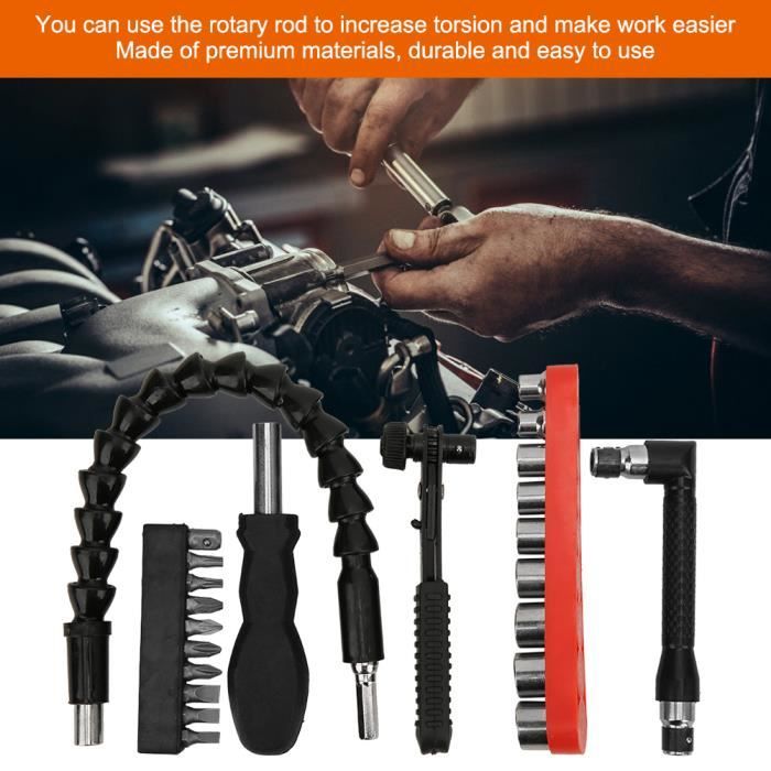 La tige est très flexible et peut être pliée jusqu'à 300 degrés. Merci pour votre compréhension., 2., Les moniteurs ne sont pas calibrés même, la couleur d'article montrée dans les photos peut montrer légèrement différent de l'objet réel. APPLICATION: ajustement pour le tournevis hexagonal ou le diamètre de tige de foret sans fil de vis: environ 6., 35 millimètres (1/4 pouce) Ce porte-embout d'extension à tige flexible convient aux tournevis hexagonaux ou aux perceuses sans fil à vis d'un diamètre de 6,35 mm (1/4). Cocosity Porte-Embout d'arbre flexible Porte-Embout d'arbre d'extension Le porte-embout maintient fermement les fixations et les embouts lors de l'enfoncement. 99g (300mm), 129g (400mm) Le forfait comprend: 1 x arbre flexible porte-mèche d'extension Tbest Arbre flexible de perceuse électrique Arbre d'extension d'entraînement de forage diamètre... SCÈNE APPLICABLE, Principalement utilisé dans les armoires informatiques, les armoires, les meubles, les appareils électriques et autres espaces étroits, les angles morts et les autres tournevis qui ne peuvent pas fonctionner correctement. Description du produit Spécification: Matériel: Métal Queue hexagonale: 6,35 mm (1/4 ) Tête hexagonale intérieure: 6., 35mm (1/4 ) Longueur totale: 300mm / 11., 81 , 400mm / 15., 74 (facultatif) quantité: 1 Poids: Approx. S'il vous plaît prendre la vrai un en standard. Arbre Forage Magnétique 1-4'' Arbre Flexible Hexagonal Vissage Extension Rallonge Pour Perceuse Tournevis Electronique Arbre Flexible Tournevis Porte-mèche à arbre Flexible rotatif à 360 °, porte-mèche d'extension, lien, perceuse... MATÉRIEL: fait de matériel en métal, et portatif, bouclier flexible dehors protège votre main tandis que l'axe tourne.