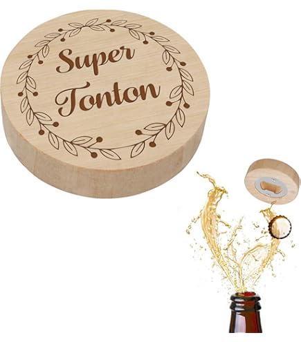 Décapsuleur en Bois Gravé sur 2 Faces Idée Cadeau Parrain Original Ouvre Bouteille en Bois Original pour la Maison Idée Cadeau Parrain Cadeau noël Tonton | Bouteille personnalisée on t'aime tonton Décapsuleur Bois Acier Personnalisé Ouvre-Bouteille Gravé 'A La Tienne Parrain' - Cadeau Original Limonadier Personnalisable Offrez-lui ce superbe ouvre-bouteille,personnalisé avec la gravure A la tienne Tonton. Cadeau parfait pour votre Tonton, idéal pour toutes les occasions: anniversaire, fête, Noël Décapsuleur en bos personnalsé, ouvre boutelle, cadeau fête des... Commandez dès maintenant cet ensemble unique et pratique pour votre Tonton . Design unique avec la gravure A la tienne Tonton, un souvenir gravé qui plaira à tous les tontons Sa petite taille lui permettra d'etre transporté partout, dans un sac à dos, dans le vide poche de la voiture, dans le tiroir de la cuisine, dans un sac à main, il ne le quittera plus. Fabriqué en bois de qualité et en acier inoxydable durable, cet ouvre-bouteille est à la fois solide et pratique