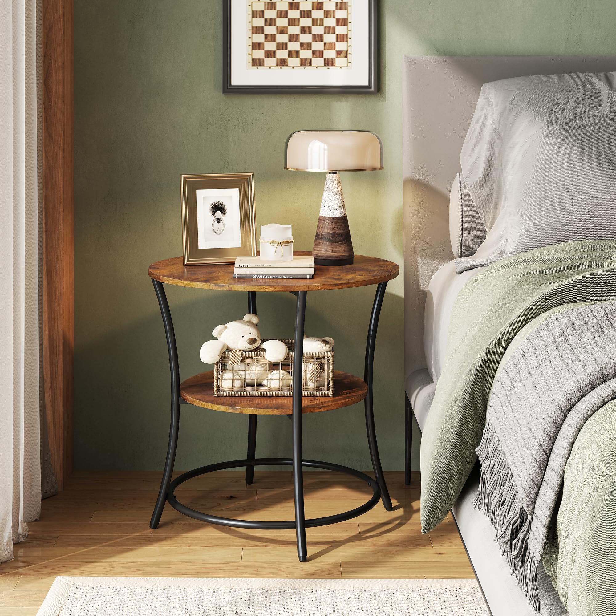 Les étagères pratiques permettent de mieux organiser vos affaires, combinant rangement efficace et design élégant pour tout type d'intérieur. Design Élégant et Moderne : Cette table d'appoint au style industriel avec un cadre en métal noir mat et un plateau en bois de qualité est parfaite pour tout décor de salon ou chambre. Vous pouvez ainsi installer votre petite table d'appoint en quelques minutes seulement, sans tracas. Fabriquée en panneau de particules et cadre en métal durable, cette table offre une grande stabilité, idéale pour vos besoins journaliers. Tables D‘Appoint À 2 Niveaux,40X30X47.5Cm Table De Chevet Petit Espace,Table Basse Avec Étagère Tables d'appoint WLIVE Cette table d'appoint avec station de charge présente des coins arrondis et des bords lisses, pour prévenir les blessures au quotidien. WLIVE Lot De 2 Petite Table d'Appoint, Bouts de canapé, Design à 2 Niveaux, Métal et Bois Artificiel, Industrielle Style, pour Bureau, Meuble Salon, Chambre, 38 x 30 x 50cm 4,44,4 sur 5 étoiles1854,4 sur 5 étoiles. 185 commentaires client 49,99 € Prix le plus bas des 30 derniers jours :Prix le plus bas des 30 derniers jours Les coins arrondis et les patins en plastique protègent vos sols et rendent cette table d'appoint idéale pour les foyers avec enfants. Coins Arrondis et Bords Lisses Dimensions Compactes avec Grande Capacité : Avec des dimensions de 38 x 30 x 50 cm, cette petite table s'intègre facilement dans les espaces restreints tout en offrant suffisamment de rangement grâce à ses étagères ouvertes. Table Moderne Salon VASAGLE Table D'Appoint, Table De Chevet 2 Niveaux, Avec Étagère Grillagée, Bout De Canapé, Cadre En Métal, Pieds Réglables, Pour Salon, Chambre Lot De 2 Tables D'appoint Style Industriel Les étagères ouvertes en bois de petite table peuvent accueillir vos objets quotidiens, tandis que le tiroir en tissu portable offre un espace de rangement caché pour vos objets personnels Réglage Pratique et Sécurisé : Les quatre pieds ajustables permettent d'ajuster facilement la hauteur de cette table de chevet pour compenser les surfaces inégales.