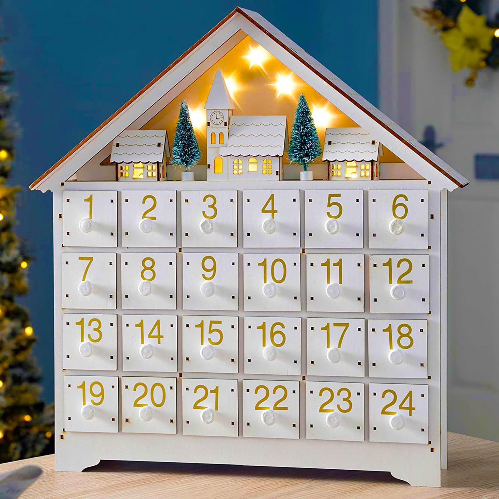 Calendrier Avent Décoratif Salon SharkTRUE Calendrier De L'Avent En Bois De Noël Avec 24 Tiroirs De Rangement, Calendrier De L'Avent Scène De La Nativité Boîte Maison, Calendrier De L'Avent Réutilisable En Bois Blanc Éclairé Compte à Rebours Tiroirs Bois Calendrier 2026, 2027, 2028, etc CALENDRIER DE L'AVENT chalet en bois avec tiroir déco Noël de 43 cm EUR... Au fur et à mesure que la nuit s'allonge, illuminez vos soirées avec ce calendrier de l'Avent enchanteur, faisant de chaque jour précédant Noël une élégante révélation de surprises. Dimensions : environ 30 x 10 x 31,5 cm. Contenu du paquet : 1 calendrier de l'Avent en bois de Noël. Cette décoration est adaptée pour l'affichage dans les salons, les chambres à coucher ou les bureaux, transformant n'importe quel espace en un environnement de Noël confortable. Merci de ne commander que si vous acceptez cette marge d'erreur. La couleur de l'article peut varier de celle de la photo, en fonction des paramètres d'affichage et de luminosité de votre ordinateur., Merci Plongez dans les esprits des fêtes avec notre calendrier de l'Avent en bois de Noël, dispose d'un design unique avec 24 tiroirs pour un compte à rebours de Noël. Le site de TOUS les calendriers : civil, lunaire, solaire - vacances scolaires et jours fériés - dates saisons, changements d'heures et heures locales - fêtes civiles et religieuses - signes du...