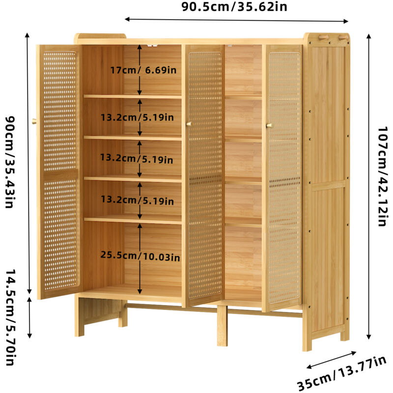 Meuble Chaussure d’Entrée en Bambou Rétro avec Étagères Armoire à Chaussures avec Tiroir 99×98... DÉTAILS PRATIQUES Trois portes en rotin avec ventilation gardent les chaussures fraîches, crochets intégrés pour sacs ou parapluies, fermeture magnétique pratique et poignée en aluminium raffinée MEUBLE À CHAUSSURES EN BAMBOU Structure solide en bambou et MDF pour une grande durabilité, facile à monter et à entretenir, les pieds surélevés permettent de nettoyer le sol sans déplacer le meuble Armoire à Chaussures Fermée Unho Meuble Chaussure D'Entrée En Bambou Armoire à Chaussures Avec Crochets BEAU MEUBLE Le meuble à chaussures allie cadre en bambou et détails en rotin pour un style naturel et élégant, idéal pour l’entrée, la chambre ou le salon, il apporte charme et utilité Ce meuble chaussures entree convient parfaitement aux petits espaces, ofant une capacit de stockage g n reuse sans compromettre l'esth tique. Lib rez de l'espace tout en maintenant un aspect soign MEUBLE À CHAUSSURES FONCTIONNEL Les chaussures laissées au sol s'abîment plus vite, attirent la poussière et donnent une mauvaise impression, un meuble à chaussures offre un espace propre et protégé pour prolonger leur durée de vie et garder l'entrée soignée Portant à Vêtements - UNHO - Armoire de Rangement - Marron - 164 cm