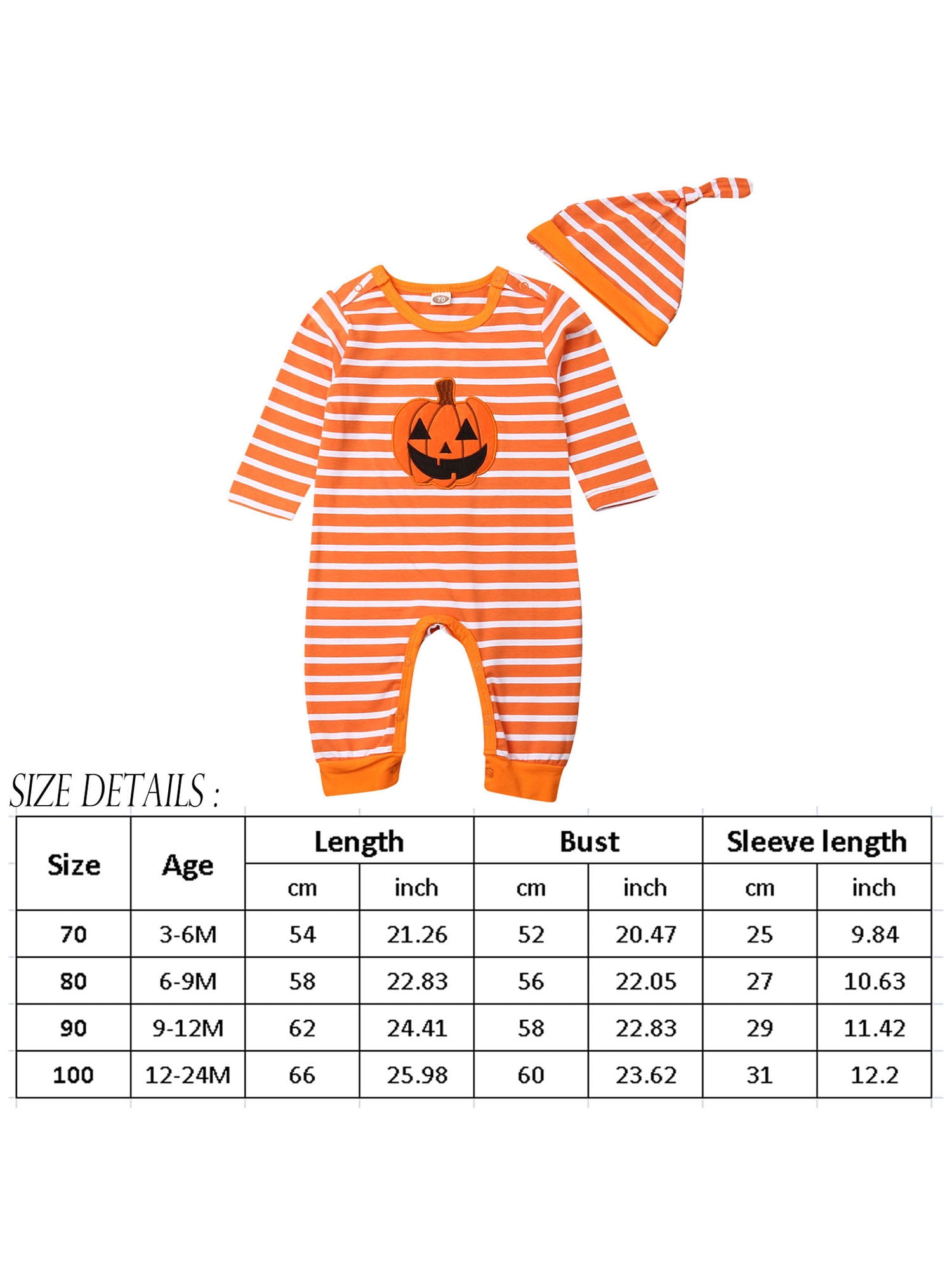 70 - Longueur : 18,90 - Poitrine : 20,47 - Tour de hanches : 24,41 - Épaules : 8,27 - Âge conseillé : 6-12 mois. PatPat – ensemble pour bébé Orange, 2 pièces, Styl... – Grandado Matériau : notre barboteuse pour bébé garçon est fabriquée en 100 % polyester de haute qualité, super douce et respirante, douce pour la peau, confortable à porter Combinaison Automne Broderie Citrouille MAHUAOYIXI Tenue D'Halloween Pour Nouveau-né Garçon Fille - Costume Combishort Bébé Fête D'automne Lavage en machine, à l'eau froide, séchage à l'air libre. 80 - Longueur : 20,08 - Poitrine : 21,26 - Tour de hanches : 25,20 - Épaules : 8,66 - Âge conseillé : 12-18 mois. Halloween] Comment décorer une citrouille sans la creuser ? 7 idées à... Design : combinaison pour bébé, couleur classique qui rendra votre tout-petit plus adorable; la barboteuse pour nouveau-né est certainement un cadeau attentionné pour les nouveaux parents lors d'une fête prénatale Genre applicable : garçons. Occasion : vêtements d'Halloween pour bébé garçon adaptés pour le printemps/automne/hiver, vêtements de plein air, usage quotidien et parfaits pour les fêtes d'Halloween, les séances photo, les jeux, les réunions de famille, les célébrations, les vacances, le parc, etc Caractéristiques : Matière : 100 % polyester., Couleur : orange., Style : décontracté. 90 - Longueur : 21,26 - Poitrine : 22,05 - Tour de hanches : 25,98 - Épaules : 9,06 - Âge conseillé : 18-24 mois. Contenu de l'emballage : 1 barboteuse. Grenouillère d'automne sans manches col rond broderie citrouille nouveau-né salopette Combishort Caractéristiques : -- Tissu super doux pour que votre bébé se sente super à l'aise. Caractéristiques : barboteuse pour nouveau-né garçon sans manches, col rond, broderie citrouille, imprimé à carreaux; fermeture à pression d'épaule pour s'habiller ou changer facilement les couches