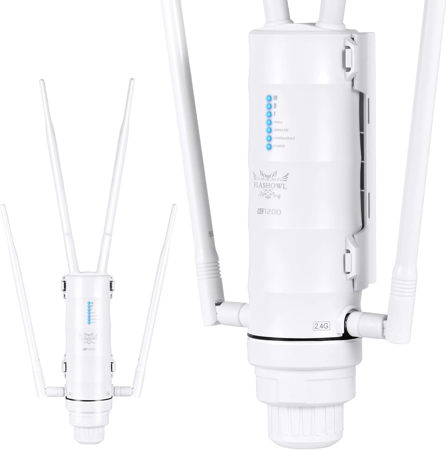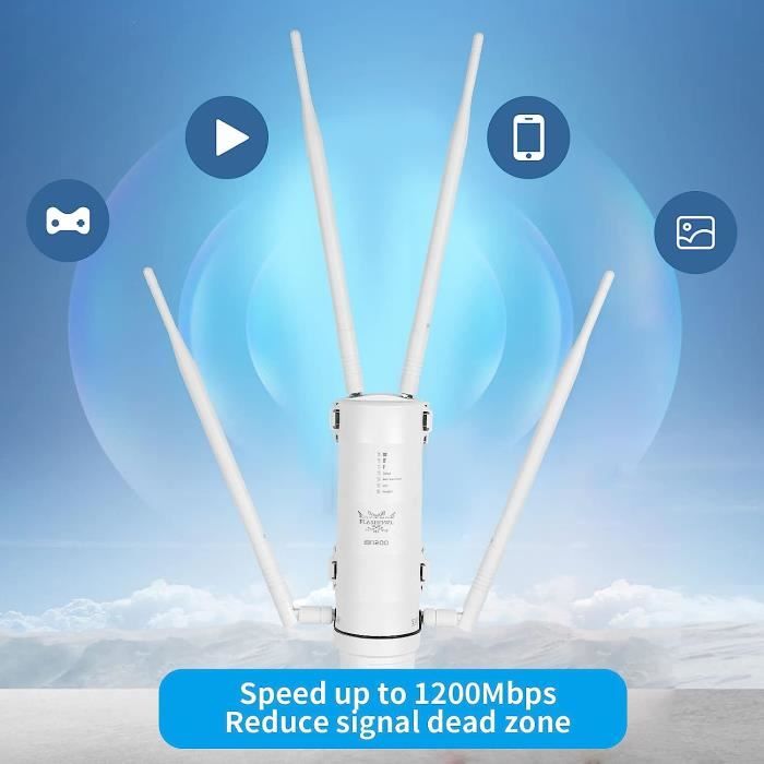 【Chiffrement de Sécurité Wi-Fi】Le point d'accès wifi extérieur prend en charge les protocoles de sécurité WPA-PSK et WPA2-PSK, offrant une protection puissante pour vos réseaux Wi-Fi domestiques et commerciaux. Ports Gigabit Ethernet NEWFAST A882 Outdoor Point D'accès Wi-FI Extérieur AC1200 Haute Bornes Wifi Extérieures IP66 NF-A882 Configuration vidéo Vidéo de marchand Répéteur WiFi sans fil, 300Mbps sous, extérieur, 2.4 et 5.8 mesurz... 【Polyvalence d'Installation et Multi-Modes Intelligents】Que vous ayez besoin d'un répéteur wifi extérieur pour étendre un réseau existant ou d'un point d'acces wifi exterieur pour couverture wifi extérieure, cet équipement s'adapte à tous les scénarios. Les modes AP/Router/Repeater/Pont se configurent en 5 minutes via l'interface web intuitive. Repeteur de signal,Point d'accès extérieur AC1200 haute puissance... Les ports Gigabit LAN/WAN assurent une latence inférieure ultra faible pour les applications critiques. 【Performances Professionnelles pour Réseaux Extérieurs】Ce point d'accès wifi extérieur intègre une trois puce haute performance offrant des débits concurrentiels de 876 Mbps en 5 GHz et 300 Mbps en 2,4 GHz. Son design unique permet une installation murale ou sur mât. Point d'accès/prolongateur Wi-Fi extérieur NEWFAST NF-A882 Avec ses 2 antennes externes 5dBi orientables et une puissance d'émission de haut, cet amplificateur wifi extérieur couvre jusqu'à 50-200 mètres en espace ouvert, idéal pour les campus universitaires, les parcs industriels ou les domaines viticoles. 【Durabilité et Résistance aux Conditions Extrêmes】Conçu pour défier les éléments, cette borne wifi exterieur certifiée IP66 résiste aux températures de -10°C à 55°C et une certaine humidité.