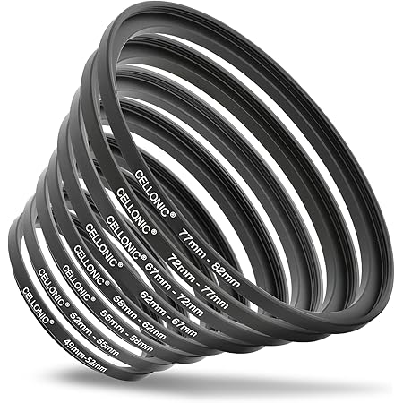 Anillo adaptador step up 49 mm a 77 mm para Matte Box 80 mm O.D Bague De Réduction Filtre Photo Vhbw Bague D'adaptation De Filtre Step-Up De 86 Mm Vers 95 Mm Bague Réduction Objectif 82 86 Mm Filetage extérieur sur le côté de l'objectif : 82 mm. Filetage intérieur sur le côté filtre : 86 mm. Contenu ayex Bague Step-Up Adaptateur de filtre Bague de réduction avec filetage extérieur et intérieur Compatible avec tous les fabricants Avec l'aide de cet adaptateur de filtre, vous pouvez facilement fixer vos filtres, convertisseurs ou autres accessoires avec un filetage plus grand sur un objectif avec un filetage plus petit. Spécification : Nom du produit: Intensifier l'anneau adaptateur Matériau: aluminium : filetage mâle 82mm/3.2 Filetage femelle: 86mm/3,4 Taille(environ): 88 x... 82 mm Filetage interne et 86 mm Détails : Monture en métal de qualité supérieure en aluminium anodisé noir - Finition précise (fraisée CNC) - Facile à utiliser - Ajustement parfait - Légère, fine et pourtant stable Contenu : 1 anneau Step Up ayex (dans la configuration sélectionnée), Matériau : métal , Couleur : Noir