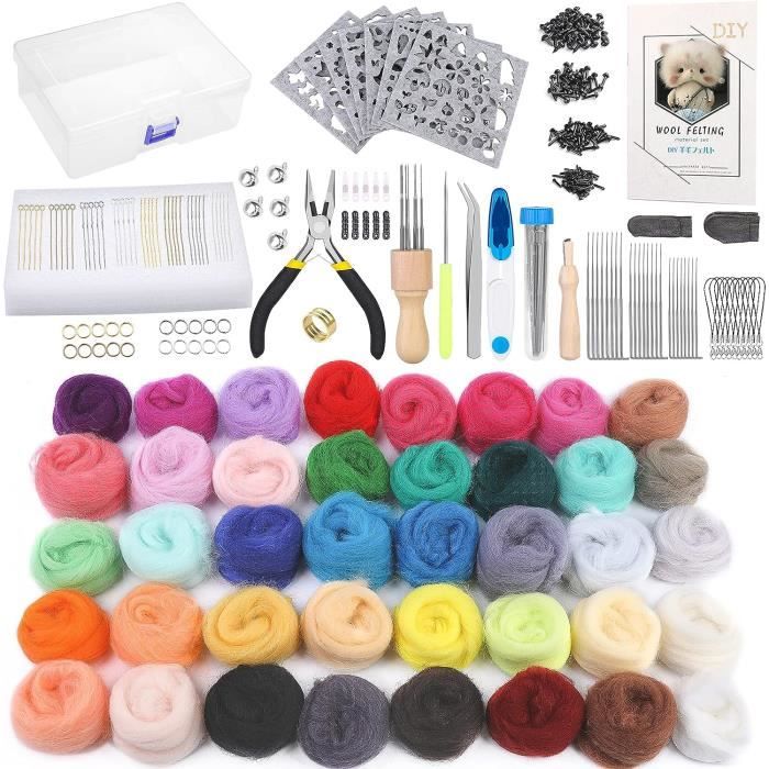 Remarque : Les mesures étant prises à la main, les tailles indiquées peuvent varier légèrement. Feutrage à L'aiguille Complet Feutrage Aiguille Débutant Kit Feutrage à L'aiguille 25 Couleurs - Laine Cardée Avec Outils Complets Pour Débutants Kit Feutrage Aiguille Kit Feutrage 25 Couleurs Utilisations du fil de laine feutrée : Pour les projets de feutrage, le filage, la fabrication de laine artificielle, le tricot. Utilisation polyvalente : Idéal pour le feutrage à l'aiguille et le feutrage humide. Les parents et les enfants peuvent le fabriquer ensemble pour promouvoir les compétences pratiques et la créativité des enfants, et améliorer la relation entre parents et enfants. Ce petit ensemble est idéal pour le feutrage à l'aiguille de petits animaux sauvages, de chiens, de chats ou pour des projets d'artisanat décoratif. Kit de feutrage à l'aiguille pour débutants, 42 couleurs, kit d'outils 2 bouchons de poussière., 2 yeux de sécurité., 1 clochette. Haute qualité et super doux : Les rouleaux de laine feutrée sont fabriqués à partir de fibres de laine naturelle de haute qualité, très douces et sans grumeaux, ce qui vous apporte un toucher confortable. 1 bâton de colle de 10 cm., 1 tapis en mousse. Parfait pour les bijoux, la fabrication de chauve-souris, de poupées, de savon, de boules de séchage, et pour tout type d'artisanat. La longueur de la laine est d'environ 10-15cm et la jauge est d'environ 18., 5-26um, parfait pour divers projets de feutrage. Jeteven Feutrage de Laine Kit de Laine Cardée à Feutrer Feutrage à l... Kit de feutrage à l'aiguille HURRISE - Fait à la main - Jouet en feutre... Poids de la laine : 2 g par couleur. 2 sangles de téléphone., 11 aiguilles à feutrer., 5 porte-clés., 1 alêne., 1 récipient à aiguilles. D'une grande plasticité, c'est le meilleur choix pour fabriquer des jouets, des objets d'art et d'artisanat, et peut également être utilisé dans le textile. Spécification : Poids : environ 108 g.