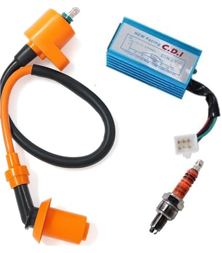 Pièces Performance Moteur GY6 Bougie D'allumage AC CDI 6 Broches Haute Performance France Pièce Rechange VTT Dirt Bike Gy6 FINE-CDI 6 broches Bobine d'allumage de boîte CDI de course à 6 broches Nouvelle Bougie d'allumage CDI Racing Performance pour GY6 50CC 125CC... Absolument, la bougie d’allumage est vraiment un élément de haute qualité dans l’emballage. Merci pour votre compréhension., 3., Les moniteurs ne sont pas calibrés de la même manière, la couleur de l'élément affichée sur les photos peut être légèrement différente de l'objet réel. Veuillez prendre le vrai comme standard. Description : Ce pack comprend un CDI, une bobine d'allumage et une bougie d'allumage. Convient pour Gy6 50 CC 125 CC 150 CC basé sur moteur ATV Scooter cyclomoteur Dirt Bike Go Kart pour jl50qt-5 pour rouleau CDI 4 takt offen forcdi box Ricardo 125 La bobine peut améliorer l'efficacité de la combustion et renforcer les performances électriques pour le rouleau pegasus s50 gp 4t offene cdi pour bougie d'allumage pour boîte cdi forgy6 125cc forgy6 dc CDI de course haute performance basé sur le moteur GY6 pour flex tech 50ccm cdi pour pièces de performance cr7hsa forgy6 180cc MOTEUR CDI BOBINE D'Allumage MagnéTo Stator Bobine Jeu de Bougie D...