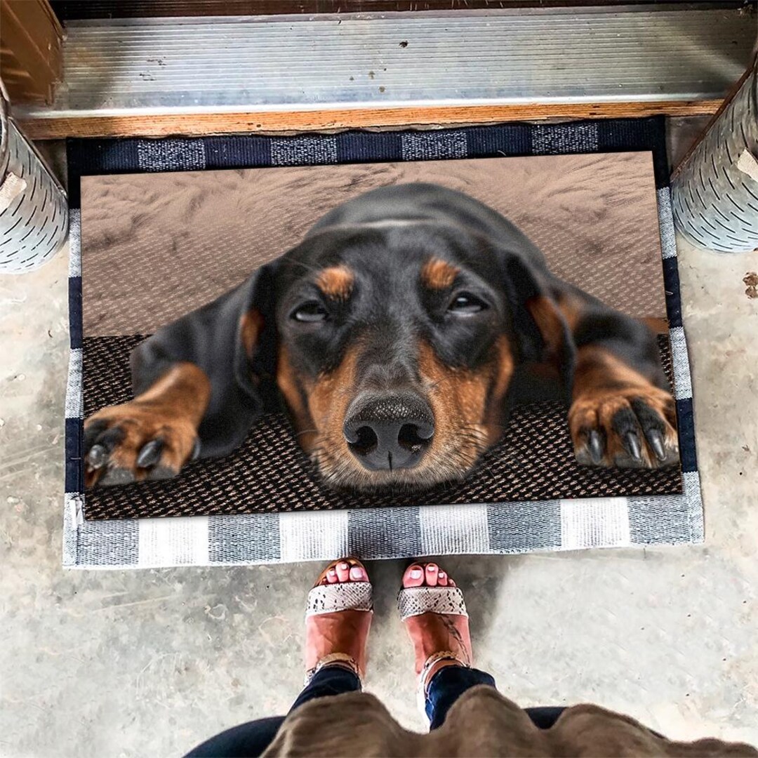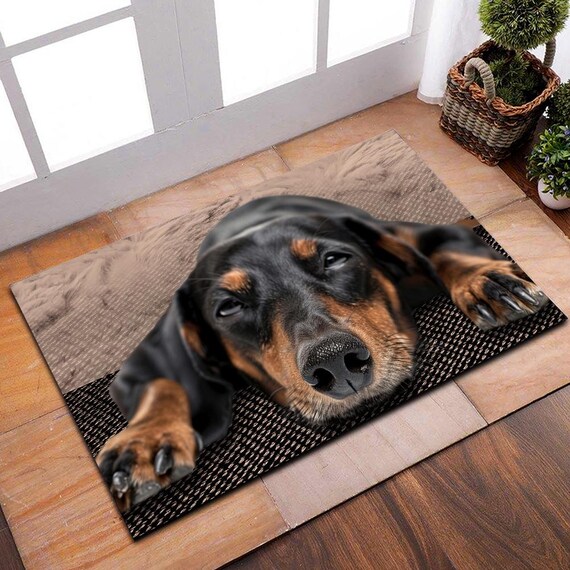 Adhésif décoratif chien saucisse - TenStickers Tapis Cachemire Doux 40x120cm Statue D'animal Artistique En Forme De Chien Teckel, Pour Armoires, étagère Tapis Déco Forme Teckel Que ce soit pour une entrée, un salon ou une chambre, ce tapis design teckel est une façon simple et efficace d’apporter un peu de malice et de charme à votre décoration quotidienne LARGE APPLICATION : Ce tapis décoratif lui permet d'embellir votre salon, chambre, salle à manger, bureau à domicile, cuisine, salle de jeux, entrée, chambre d'enfants, couloir, balcon, dortoir autres espaces décoration. Tapis de porte d'entrée à motif de chien teckel,décoration de la maison,non ald,polymères de sol... CONCEPTION À PROFIL : Notre paillasson décoratif de Noël est si fin, sa conception à profil est idéale pour les portes ou les entrées, garantissant que votre porte se coincera pas que le paillasson restera en place. OCCASION : Ce tapis de fonctionne paillasson d'entrée, paillasson d'extérieur, paillasson de bienvenue, tapis d'intérieur pour l'entrée, tapis à chaussures, paillasson pour chien, tapis de , etc.