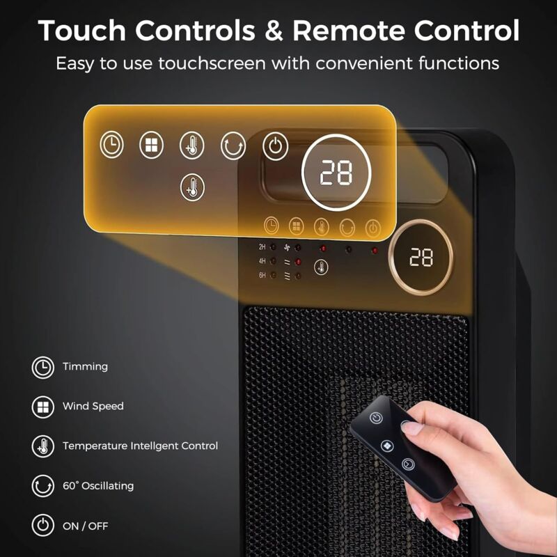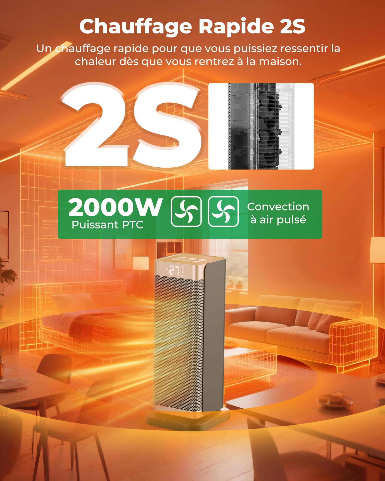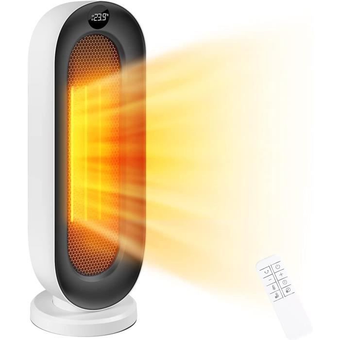 Le chauffage est léger et peut être facilement déplacé entre le salon, la chambre, le bureau et le bureau. Chauffage économique Mode ECO Chauffage D'appoint 2000W, Radiateur Soufflant, Chauffage Soufflant, PTC Radiateur, ECO Radiateur Soufflant Minuterie 12h Il envoie un courant d'air chaud puissant en seulement 2 secondes après l'allumage. Il envoie un courant d'air chaud puissant en seulement 2 secondes après l'allumage. Avec une puissance de 2000W, il augmente rapidement la température... Faible Bruit : Le niveau sonore du heater est aussi bas que 45 dB (environ 1 m de distance) lorsqu'il est en fonctionnement, ce qui ne perturbe pas le travail, les études et le sommeil, créant un environnement sûr et confortable. Oscillation à 70° : L’oscillation grand angle à 70 ° favorise la circulation de l’air chaud, répartissant uniformément la chaleur dans chaque recoin de la pièce. Chauffage d'appoint soufflant PTC 2000 W avec thermostat - 3 modes, minuterie 12h, oscillation 70° - Écoénergétique, silencieux, protection surchauffe et... ECO : Après avoir défini la température (15℃-35℃), le chauffage passe en mode ECO, offrant un confort thermique constant tout en économisant de l'énergie, ce qui est plus économique pour dormir la nuit ou pour une utilisation prolongée. Avec une puissance de 2000W, il augmente rapidement la température intérieure pour que vous ressentiez rapidement la chaleur. Minuterie 12H : Le radiateur est équipé d’une minuterie de 1 à 12 heures. WolinTek Chauffage Soufflant Ceramique 2000W,Chauffage d'Appoint,Effet de Flamme 3D Réaliste 3 Modes : Le chauffage dispose de 3 modes pour satisfaire vos différents besoins : ① Vent naturel, utilisable toute l'année ; ② Chaleur basse, économe en énergie et douce ; ③ Chaleur élevée, chauffage rapide. Télécommande : Le radiateur d'appoint est équipé d'une télécommande pour ajuster facilement toutes les fonctions depuis le canapé ou le lit.