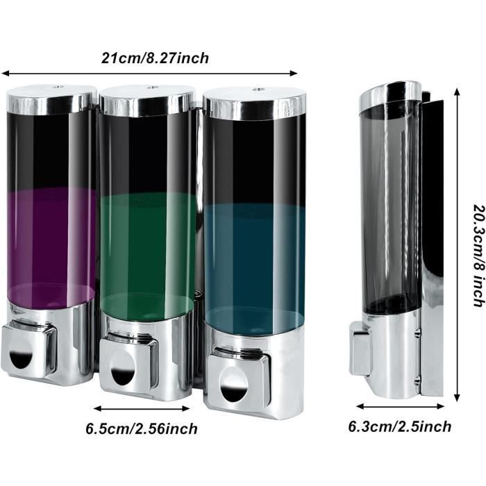 Une recharge peut répondre à une utilisation à long terme, réduisant ainsi le problème d'ajout fréquent. Remarques : Les mesures étant prises à la main, les tailles indiquées peuvent varier légèrement. Distributeur Manuel Pour Shampoing Distributeur De Shampooing Et D'après-shampooing, Distributeur De Savon Distributeur Mural Shampooing 3 Compartiments Support Mural Pour Distributeur De Savon Distributeurs De Savon... 3 compartiments indépendants : ce distributeur de savon de douche dispose de 3 compartiments de rangement indépendants pour liquides, peut contenir respectivement le gel douche, le shampooing et l'après-shampooing, évitant l'empilage désordonné des bouteilles et des canettes, rendant votre salle de bain plus rangée et belle. Ce distributeur de savon mural à 3 compartiments est conçu pour les familles modernes et les lieux haut de gamme. Le distributeur de douche à 3 compartiments peut être utilisé dans les maisons, les hôtels, les gymnases, les centres de spa, les toilettes publiques et d'autres endroits pour rendre l'espace plus propre, plus hygiénique et plus moderne Caractéristiques : Capacité : 1200 ml., Matériau : plastique. Vous pouvez choisir la méthode de fixation appropriée en fonction des différentes surfaces murales ; l'adhésif puissant ne tombe pas facilement et est adapté à une variété de murs lisses tels que le carrelage, le marbre, le verre, le métal, etc La fenêtre transparente vous permet de vérifier le liquide restant à tout moment pour un réapprovisionnement en temps opportun Décharge de liquide facile en un clic et précise : Ce distributeur de savon de salle de bain a une tête de pompe de type poussoir, vous permettant de le prendre facilement, lisse et sans blocage Pas de perforation nécessaire et méthode d'installation à double vis : Le support mural pour distributeur de shampooing est équipé d'un support adhésif puissant, ce qui permet une installation sans clou sans endommager le mur. Que ce soit pour un usage quotidien à la maison ou dans des lieux publics tels que les hôtels, les gymnases et les dortoirs, il peut être facilement traité Largement utilisé : En plus des articles de toilette, le distributeur de gel douche peut également être utilisé pour stocker du désinfectant pour les mains, du liquide vaisselle, du désinfectant, etc. Grande capacité de 1200 ml : la capacité totale du distributeur de savon sans perçage est jusqu'à 1200 ml, et chaque réservoir de stockage de liquide peut contenir 400 ml. Une recharge peut répondre à une utilisation à long terme, réduisant ainsi le problème d'ajout fréquent L'expérience de décharge fluide du liquide améliore l'efficacité d'utilisation et rend le bain plus détendu et agréable Installation sans perçage : le distributeur de shampooing noir est facile à installer et est équipé de deux méthodes d'installation : adhésif puissant et vis. Le distributeur de douche rechargeable fournit également une option d'installation à vis, qui est stable et ne tombera pas, et est adapté à tous les types de murs. Distributeur De Savon Liquide Mural Pour Douche,Shampooing,Après