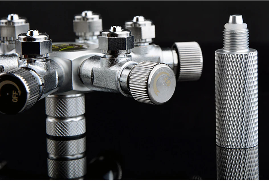 Accessoire Aquarium Compteur Bulles Aquarium,régulateur De CO2 D'aquarium,avec Compteur De Bulles,vanne De Accessoire Aquarium CO2 Compteur Bulles Aquarium CO2 Régulateur Bulle Compteur Clapet Anti-retour Maison de Aquarium,Régulateur de CO2 pour Aquarium,régulateur de pression de CO2... Lors de l'empilement de plusieurs unités, un diffuseur de CO₂ basse pression est nécessaire pour de meilleurs résultats. Spécification: Poids : 117 g Couleur : Gris Titane Matériau : alliage d'aluminium Taille : environ 9,5 cm x 4,8 cm / 3,7 x 1,9 Utilisation : La sortie de CO2 est divisée en deux lignes et doit être utilisée avec un manomètre. Nous garantissons que le mode d'affichage est identique à celui présenté sur les photos., 2., Veuillez prévoir une légère différence de dimension de 1 à 2 cm en raison de différentes mesures manuelles. Caractéristiques: 1., 【Conception extensible】 : Le distributeur de CO₂ pour aquarium est doté d'une conception à deux canaux, permettant d'empiler et d'assembler plusieurs unités (une seule pièce incluse dans l'emballage). 【Conception Extensible】 : Le distributeur de CO₂ pour aquarium est doté d'une conception à double canal, permettant d'empiler et d'assembler plusieurs unités (une seule pièce incluse dans l'emballage). Il peut être facilement étendu pour fournir 6 canaux de sortie, répondant ainsi à divers besoins de distribution. 【Construction En Alliage D'aluminium】: La surface subit un processus d'anodisation, offrant une excellente résistance à l'oxydation et à la corrosion, garantissant des performances fiables à terme. iOYOOW Aquariu CO2 Diffusor, Glas CO2 Syste Diffusor, U-föriges CO2...