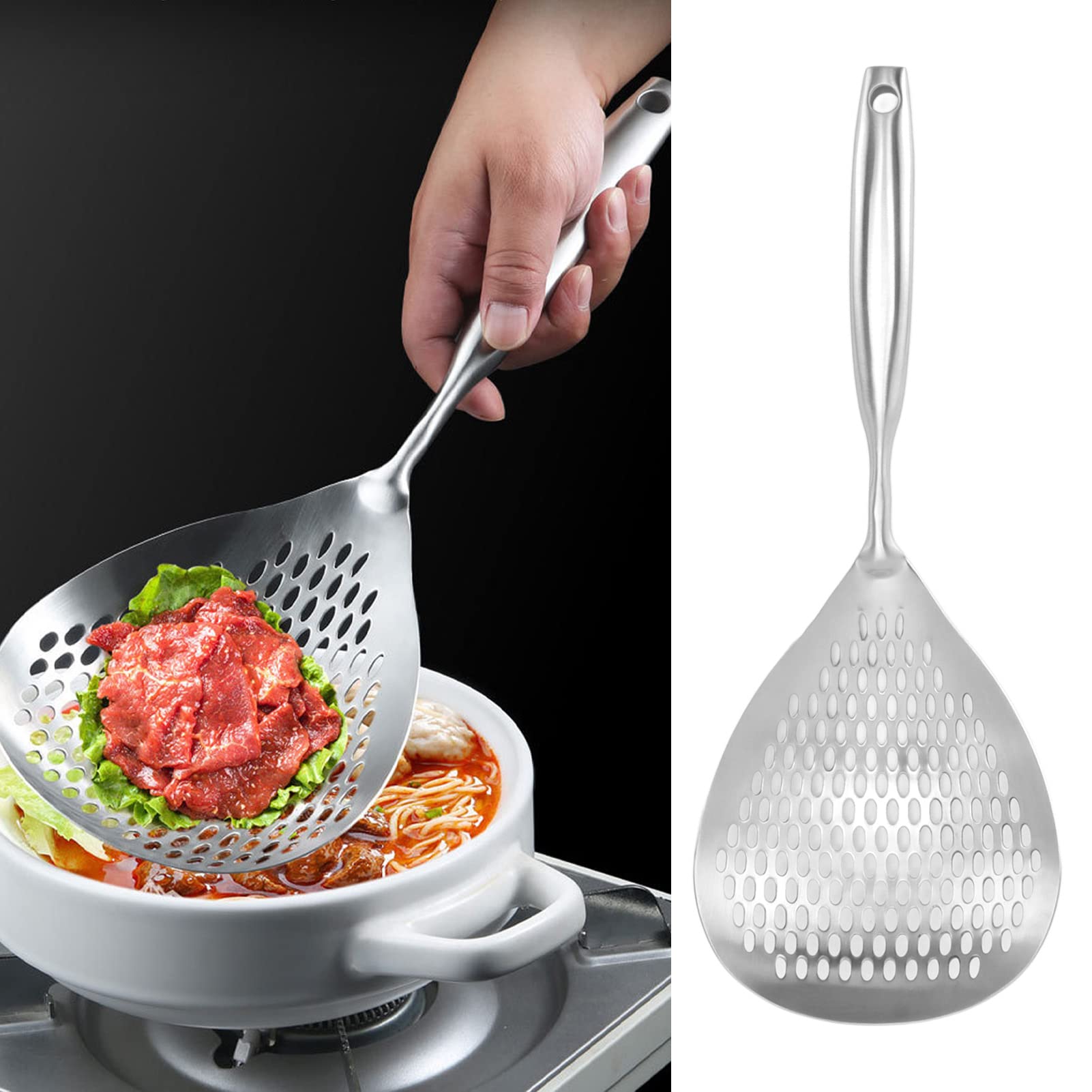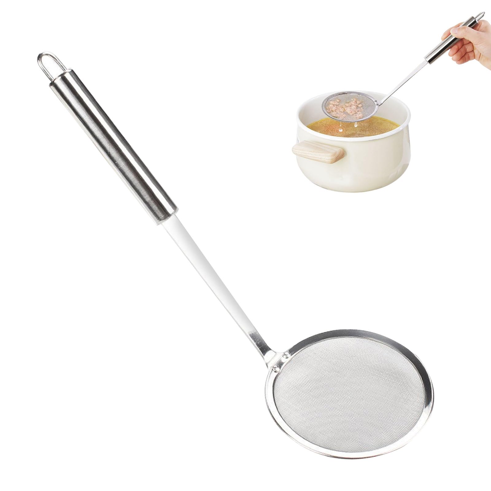 Matériel sélectionné: La crépine en acier inoxydable fait assouvir la scoop avec des caractéristiques fortes et fiables, faciles à nettoyer et pas facilement déformées, lui permettant de résister à des températures élevées et une utilisation fréquente pendant la cuisson, prolongeant sa durée de vie et offrant un bon aide à la cuisson Ustensile Cuisine Inox Friture Pâtes Écumoire à Fente En Acier Inoxydable, Louche, Passoire D'araignée, Passoire De Cuisine Pour La Cuisine, La Friture Ustensile Cuisine Inox Crochet 1 、 Matériau en acier inoxydable: La cuillère de l'écumeur est en acier inoxydable haut de gamme, robuste et fiable, chaleur, pas facile à nettoyer, pas facile à déformer, longue durée de vie. Multifonction : cette passoire de cuisine se distingue par sa polyvalence, car elle est non seulement idéale pour la cuisson des légumes, mais peut également être utilisée pour diverses autres utilisations dans la cuisine Effet de filtre fin: la crépine, le filtre à mailles fins peut filtrer avec précision les impuretés, ce qui rend le nettoyage des aliments, tout en maximisant la préservation de la saveur d'origine des ingrédients. Qu'il s'agisse de blanchir ou d'éliminer les aliments frits, cela peut améliorer l'efficacité de la cuisson. Ecumoire - Limics24 - Pièces Acier Inoxydable Spider Passoire Pot... 5 、 Utilisation polyvalente: une cuillère à l'écumeur multipagique peut être utilisée pour s'efforcer et ramasser des aliments, ainsi que pour remuer et lancer pendant les sautés, la cuisson des pâtes et d'autres processus de cuisson. 2 、 Poignée longue: La cuillère de passoire est conçue avec une longue poignée métallique, facile à tenir, pas facile à glisser, plus sûre à utiliser, vous aide à éviter de renverser de l'huile, de l'eau ou d'autres liquides de cuisson. Sécurité à longue poignée: la conception de la cuillère à fentes de la longue poignée métallique en acier permet aux utilisateurs de saisir facilement et de ne pas glisser, améliorant considérablement la sécurité de l'utilisation, évitant efficacement les éclaboussures d'huile, d'eau et d'autres liquides pendant la cuisson et de réduire le risque de brûlures et d'autres blessures. Écumoire À Mailles Crépine D'Écumoire Tamis À Pâtes Louche De Friture 4 、 Conception de crochet: la poignée de cette louche est conçue avec un crochet pour la suspension et le rangement faciles, occupant peu de place. Stockage pratique: la conception de crochets intelligents de la cuillère de skimmer facilite la suspension et le rangement de la cuillère, sauvant un espace de cuisine.