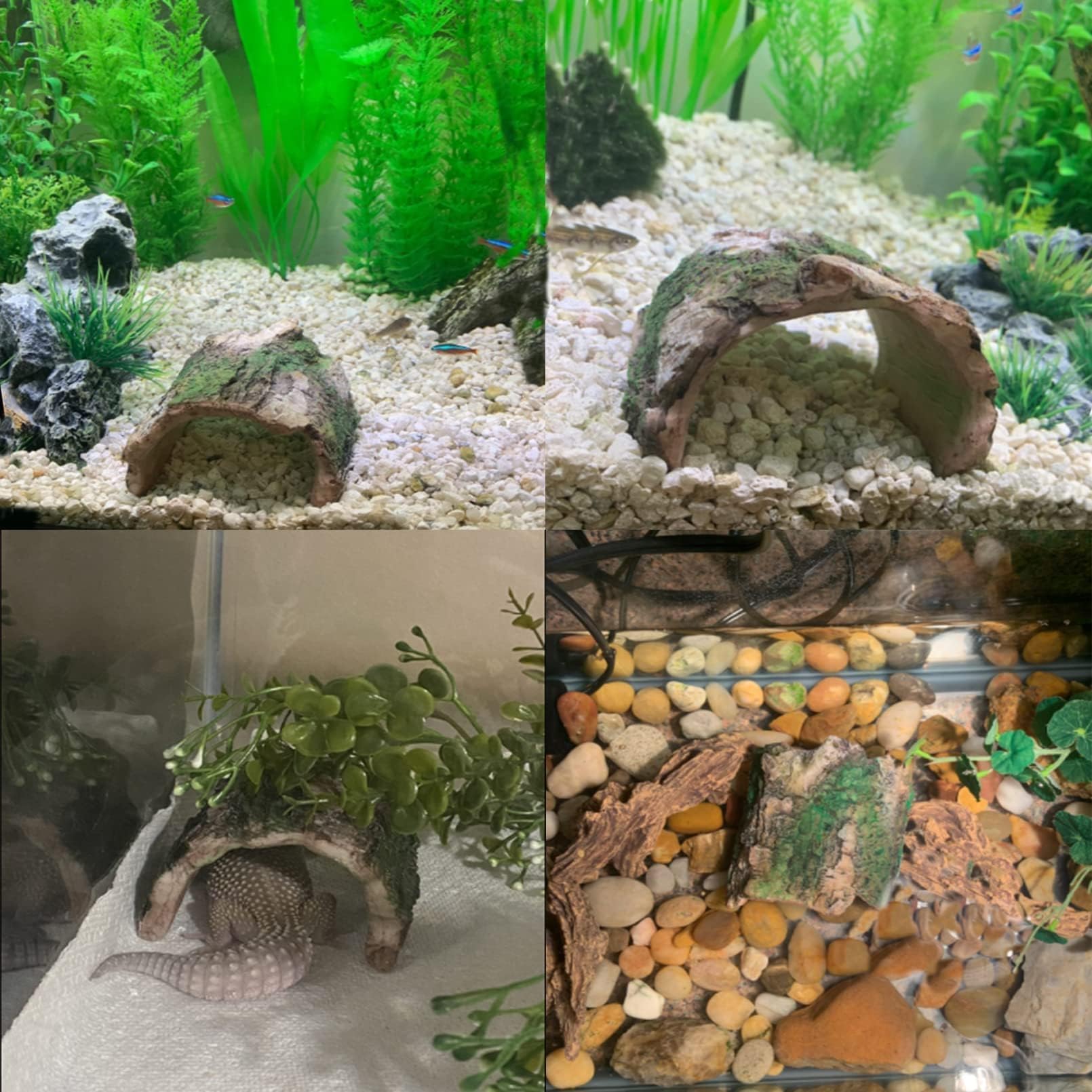 Décoration Aquarium Tronc Arbre Résine Tronc D'arbre D'aquarium - VGEBY - Résine écologique - 16cm Grotte Cachette Poissons Résine Grandes branches naturelles de bois flotté reptiles aquarium aquarium... SURENHAP Grotte cachée de reptile NS-49 Grotte Cachée de Simulation en Conception réaliste : le tonneau de vin cassé est décoré de peinture usée, de grottes et de mousse, ce qui semble très réaliste et donne à l'aquarium une sensation naturelle lorsqu'il est placé à l'intérieur. Taille : vous recevrez 2 décorations d'arbre d'aquarium en résine, les décorations d'aquarium mesurent environ 13,5 x 3,5 x 6 cm et 14 x 5,5 x 7 cm. Offrez à... Applications larges : il peut être utilisé pour décorer des aquariums et des aquariums, la décoration de la maison, des meubles de bureau et des grottes de reptiles, etc. Elle permettra également de détendre vos poissons et offrira à votre animal un endroit où jouer et se cacher. Même si elles restent longtemps dans l'eau, elles ne changeront pas de couleur et ne développeront pas de problèmes d'algues. Matériau de qualité supérieure : cette grotte décorative pour aquarium est fabriquée en résine de haute qualité, respectueuse de l'environnement, non toxique, inoffensive et sans danger pour les poissons et la qualité de l'eau.