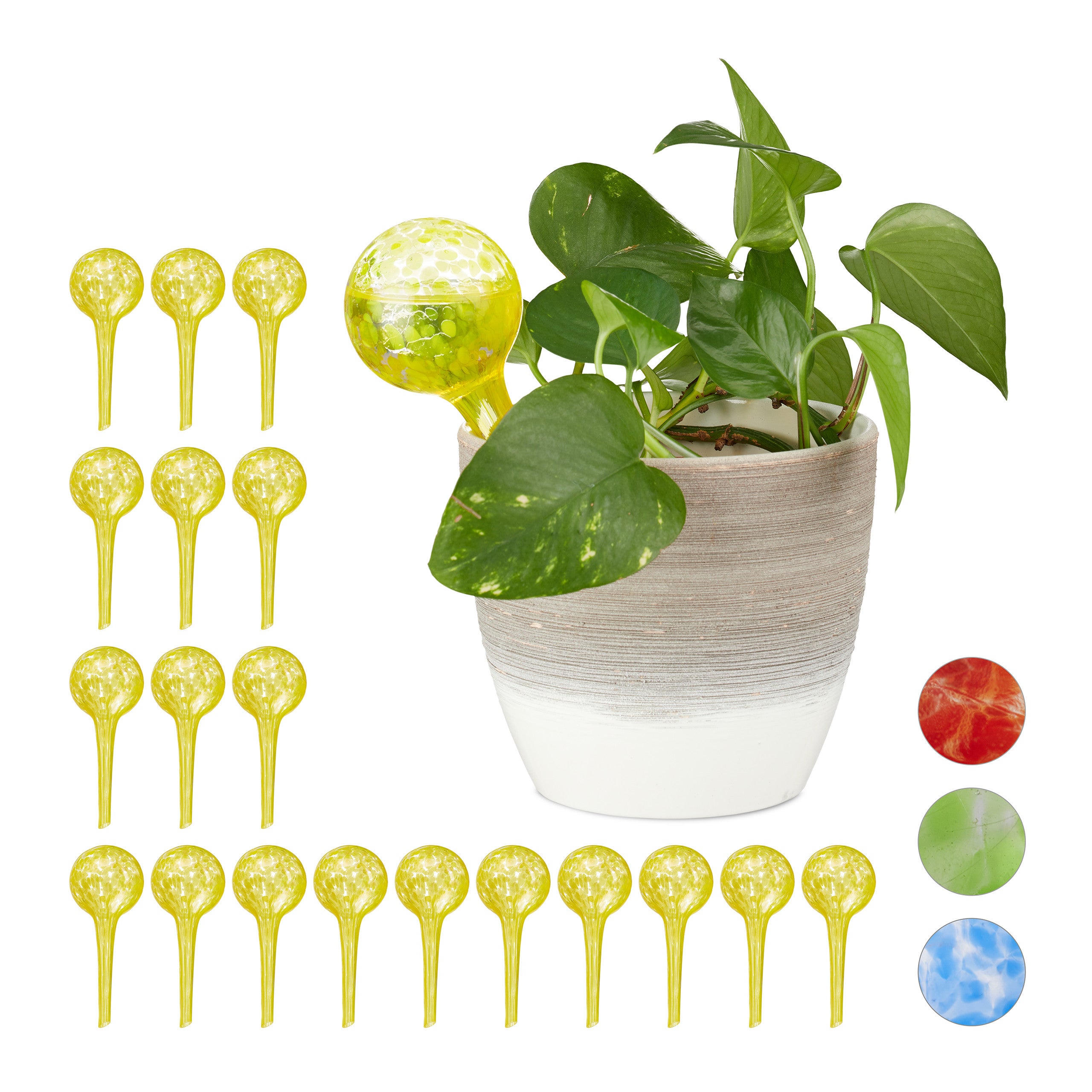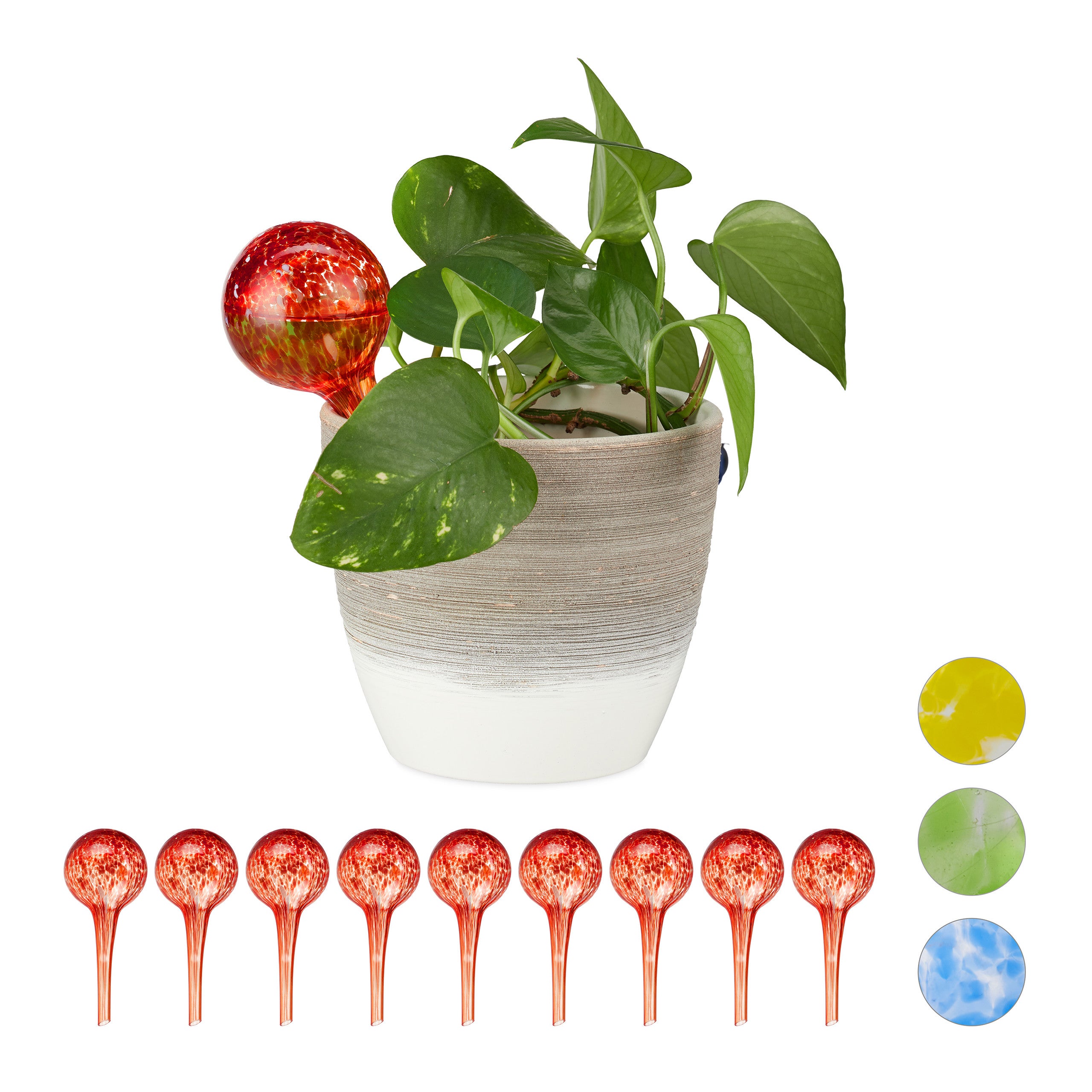 Il vous aide à prendre soin des plantes, mais aussi à décorer la maison, le jardin et la cour. NiHome Lot de 4 globes d'arrosage automatique en verre soufflé à Ce dispositif d'arrosage est fabriqué à partir de PVC, qui a une bonne perméabilité et peut clairement voir la quantité d'eau à l'intérieur du dispositif d'arrosage Globe Arrosage Automatique Plante Lot De 2 Globes D'arrosage En Forme De Cœur Pour Plantes D Globes Arrosage Plantes Remplissez le dispositif d'arrosage avec de l'eau et insérez directement le dispositif d'arrosage de fleurs dans le sol. Convient pour les types de plantes en pot, plantes d'intérieur et de jardin extérieur. Relaxdays Globes d’arrosage lot de 10, Distributeur eau plantes et... Améliorez l'entretien de vos plantes avec nos globes d'arrosage pour plantes, alliant fonctionnalité et élégance, assurant à vos plantes d'intérieur et d'extérieur une hydratation constante Citrouille : environ 25 x 11 cm. Un système simple d'auto-arrosage pour les plantesDécouvrez le moyen ultime de garder vos plantes saines et luxuriantes grâce à nos globes d'eau innovants pour l'arrosage automatique. Ces dispositifs d'arrosage intelligents sont conçus pour rendre l'entretien des plantes facile et sans souci. Voici pourquoi nos globes d'eau sont un incontournable pour tous les amoureux des plantes... Type : cœur/citrouille. Caractéristiques : Composant : PVC. Merci de ne commander que si vous acceptez cette marge d'erreur., 2., En raison de la différence entre les écrans, l'image peut ne pas refléter la couleur réelle de l'article. Ce dispositif d'arrosage est fabriqué en PVC, qui a une bonne perméabilité et peut clairement voir la quantité d'eau à l'intérieur du dispositif d'arrosage. Il vous aide à prendre soin des plantes, mais aussi à décorer la maison, le jardin et le jardin