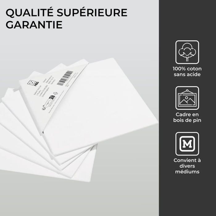 Tout ce qu'il faut savoir pour commencer l'acrylique pouring / la peinture fluide! – Apprendre la peinture Toiles à peindre 12 pcs blanc tissu et bois massif pin-ASH7805328266199... Toile Pour Peinture Sur Bois Toiles Pour Peinture, Panneaux De Toile, Fournitures D'art En Coton, Panneau De Toile Pour Peinture Acrylique, Versement, Peinture à L'huile, Aquarelle Canvas Painting Ces toiles sont de merveilleux cadeaux pour les amis et la famille qui aiment peindre. Matériau Haut de Gamme: Nos toiles à peindre à peindre sont composées d'acrylique de haute qualité et garantissent une surface de peinture stable et fiable pour une utilisation à long terme Adaptée à de nombreux supports tels que toile, bois, papier ou pierre, sa viscosité moyenne la rend facile à mélanger et à appliquer. Made in Germany – idéale... Spécifications du produit Nom: toile peinture Matériau: acrylique Couleur: blanc Forme: cœur, cercle, pentagone, carré Dimensions de l'emballage: 19 x 16 x 2,4 cm Contenu de l'emballage 3 x cœur 3 x cercle 3 x pentagone 3 x carré 6 x pinceaux Kit de Toiles: Le kit de 12 pièces comprend 4 panneaux en toile de différentes formes (cœur + cercle + hexagone + carré, 3 pièces de chaque) et 6 pinceaux de haute qualité, parfaits pour peindre et jouer de manière créative Large Gamme D'applications: Les toile la peinture à l'huile, la peinture à la détrempe, la peinture à l'aquarelle, etc, elles conviennent à l'artisanat, aux œuvres d'art, à la peinture, aux projets de peinture décorative, aux exercices de peinture, à la peinture de personnages, au dessin, etc Facile à Créer: Les mini toiles sont faciles à manipuler et offrent une surface lisse pour une peinture uniforme, ces petites toiles retiennent parfaitement toutes les couleurs, vous laissant libre cours à votre créativité et vous permettant de créer librement