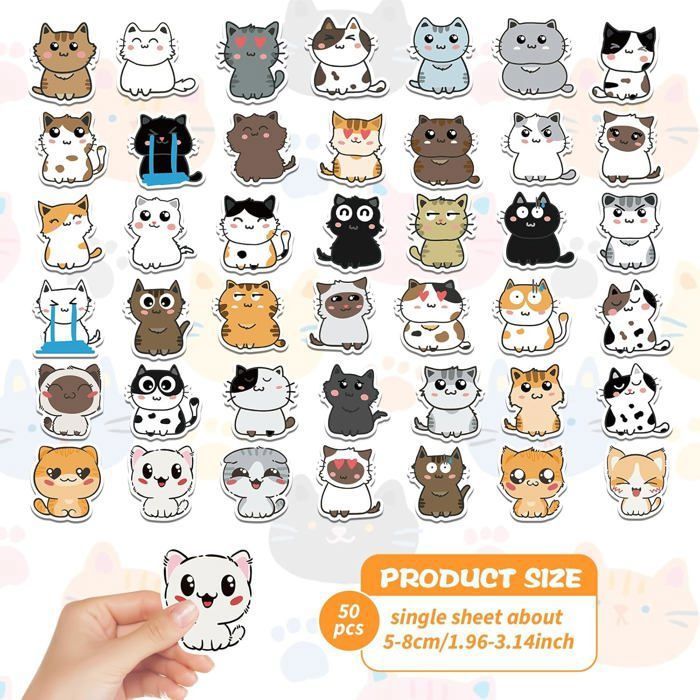 Autocollants Chatons Mignons 100Pcs Kit D'autocollants Chat, Autocollants Chaton Mignon Autocollants Chat Mignons Autocollant Stitch 60 Autocollants Kawaii Chats Mignons - Déco Autocollants jetables pour fixation de Tube, étiquette de fixation de... MULTIPLES : planches à roulettes, ordinateurs, téléphones portables, albums, skis, bouteilles d'eau et autres endroits, peuvent rendre divers objets plus spéciaux et pleins de personnalité. PACKAGE : Notre produit comprend 100 feuilles d'autocollants drôles de chatons, ils sont tous hilarants et des expressions et des actions intéressantes, chaque conception montre un chat mignon et drôle, vous permettant d'obtenir assez d'eux remplis d'autocollants de chat colorés pour vous d'utiliser. Nos autocollants drôles de chats sont réutilisables, se décollent et se recollent à l'infini, résistent aux hautes températures et ne laissent aucun résidu. Quantité : 100 piècesMotif : chaton amusant, chaton amusant, chaton mignon. MATÉRIAU : Nos autocollants sont fabriqués en PVC autocollant, le processus de surface utilise une technologie imperméable à l'eau pour répondre aux normes environnementales et est recouvert d'un film mat pour le rendre brillant, avec des motifs lisses et des couleurs vibrantes. FACILE À UTILISER : Il suffit de décoller le film protecteur au dos, de le coller sur une surface plane, propre et exempte d'eau, puis d'appuyer doucement sans laisser d'espace. Les surfaces rugueuses, les surfaces molles, les particules givrées, les surfaces en tissu et en cuir ne conviennent pas. 25 pièces filet de piège à cheveux autocollants jetables attrape...