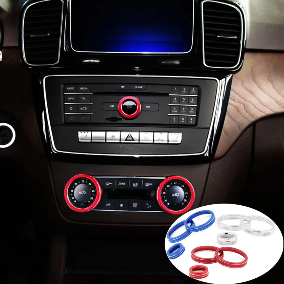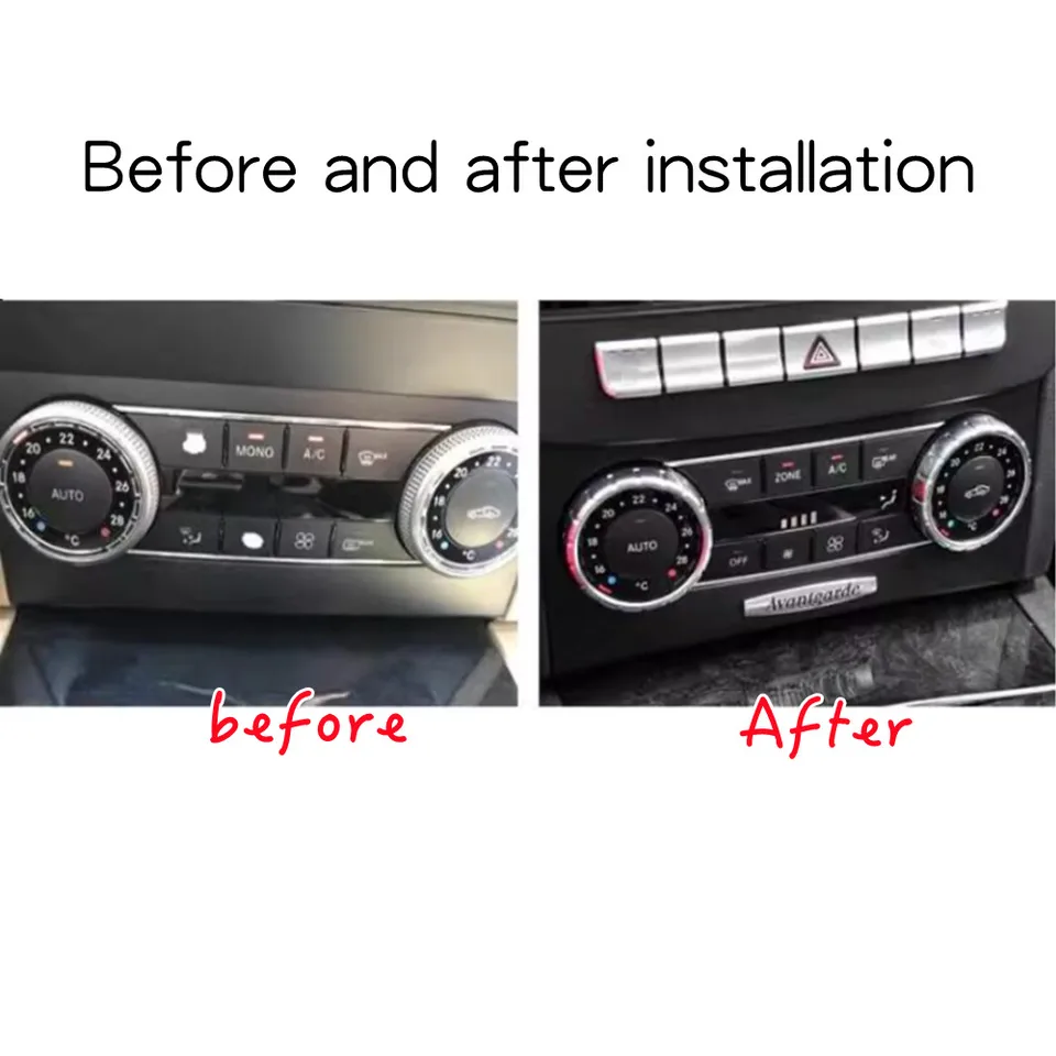 Autocollant de bouton de climatisation automatique pour Un ensemble d'autocollants pour réparer les boutons de votre voiture. Vous pouvez remplacer l'apparence agréable qu'il avait lorsqu'il était neuf Accessoire Intérieur Mercedes Pièces D'autocollants De Bouton Automatique, For C GLS GLK Garniture Commandes Climatisation Équipement:Pour la classe C (2010 2011 2012 2013),Pour CLS (2015 2016 2017)Pour GLE (2015 2016 2017 2018)Pour GLK, (2015 2016 2017)Pour SLC (2016)Pour GL (2013 2014 2015 2016)Pour SL (2012 2013 2014 2015)Pour SLK (2011)Pour Classe M (2012 2013 2014 2015)Pour Classe G (2013 2014 2015 2016 2017)Pour GLS (2016)Matériel: Alliage d'aluminiumCouleur: rouge/argent/bleuLe forfait comprend: 1 ensembleAméliore l'apparence de la console: ce cache-boutons multimédia confère à votre tableau de bord une touche raffinée et élégante. Protège de l'usure quotidienne: Conçu pour se positionner parfaitement sur vos boutons existants, ce décor d'interrupteur multimédia réduit le contact direct, minimisant ainsi l'usure et le ternissement de la surface dus à une utilisation répétée. Matériau : Le bouton de commande de climatisation de voiture est fabriqué dans un matériau fiable, résistant à l'usure et aux fissures... Elle améliore la symétrie de la zone de commande, créant une apparence unifiée qui confère à l'habitacle une impression de cohésion et de modernité. Installation rapide en quelques secondes: ce cache pour panneau de commande s'installe facilement grâce à son support adhésif pré-appliqué. Il tient fermement et vous permet de moderniser l'apparence de votre panneau de commande en quelques minutes, sans risque de glissement. Il suffit de l'aligner et de le presser, sans aucun outil.