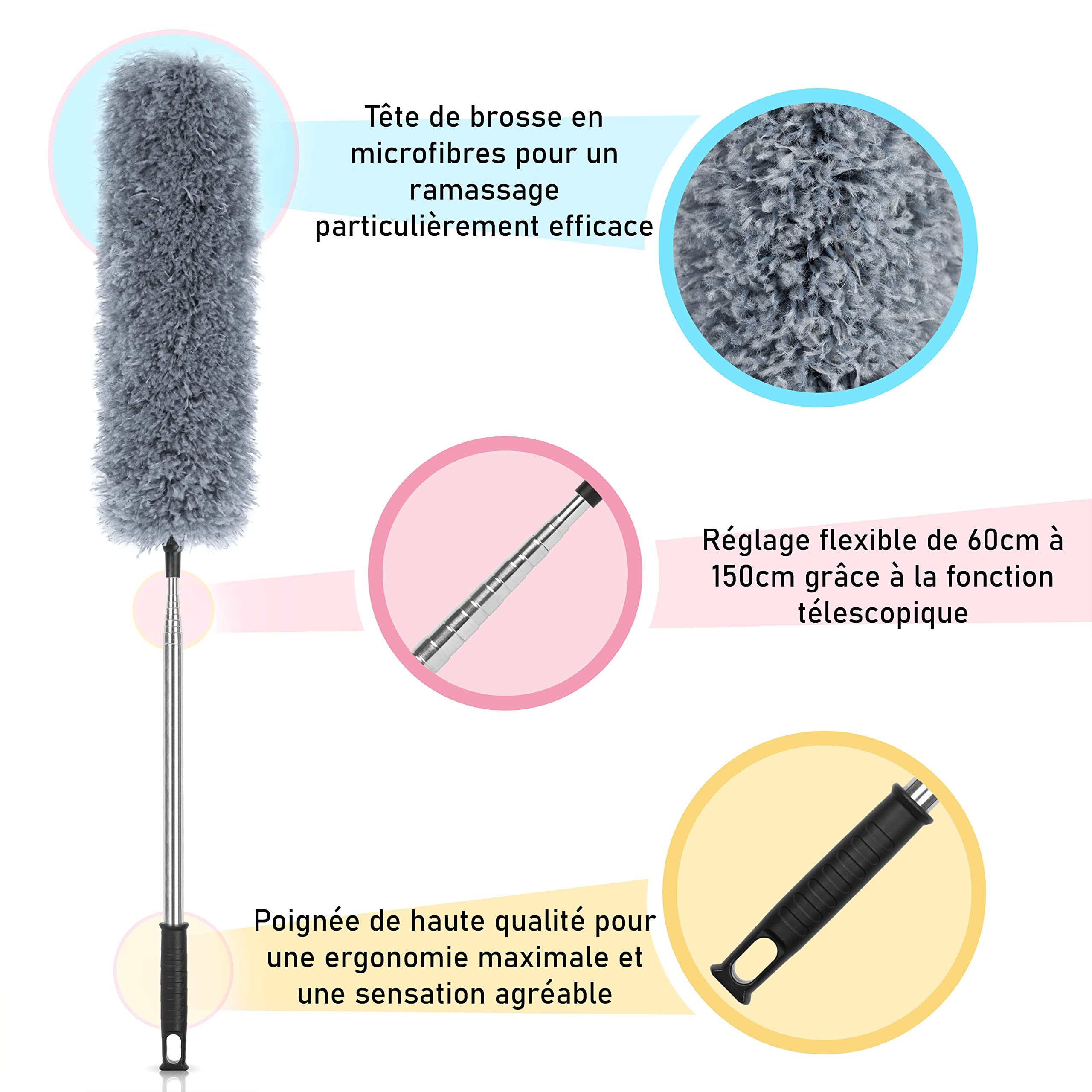 Plumeau domestique : avec poignée ergonomique, confortable à tenir et pas facile à glisser, attrape-poussière pour ventilateur de plafond Plumeau Ménage Poignée Ergonomique 57cm Plumeau D'autruche Antistatique, Nettoyage Plumeaux Plumeau Ménager, Plumeau De Voiture Plumeau Ménage Sans Rayures Contenu du forfait 1 x Plumeau Caractéristiques -Couleur : Plumeau de couleurs assorties pour la maison -Informations sur le produit : Dépoussiéreur -Matériel : Plastique et fournitures -Taille : 62,00 x 7,00 x 3,00 cm/24,37 x 2,75 x 1,18 pouces plumeau domestique pour - La poignée n'est pas facile à glisser lors de l'utilisation, ce qui peut vous permettre de mieux nettoyer la poussière et de vous offrir une maison propre et . Plumeau antistatique avec tête flexible et manche télescopique, pliable, lavable, en microfibre... outil de dépoussiérage Et la poussière ne sera pas partout quand Plumeau de comptoir : la poignée du plumeau domestique est conçue de manière ergonomique et facile à saisir, très pratique pour nettoyer les zones hautes et difficiles d'accès, nettoyage des plumeaux réutilisables Plumeau pour la maison : ce plumeau domestique est adapté pour la voiture, l'ordinateur, la climatisation, la télévision, le canapé, la table, l'armoire... Informations sur les marchandises baguette à épousseter Propre et exempt de . - Le plumeau peut vous aider à nettoyer rapidement et en profondeur la surface des meubles sans rayer les outils de meubles pour l'entretien ménager. Fournitures de nettoyage : le plumeau de nettoyage peut vous aider à nettoyer rapidement et en profondeur la surface des meubles sans rayer les meubles, nettoyant pour meubles 1 pièces plumeau Extensible, Lavable Antistatique Doux Microfibre plumeau de Nettoyage, plumeau - La fabrication de ce produit est parfaite et vous aurez une bonne expérience en l'utilisant comme plumeau à main. Plumeau robuste : le plumeau est idéal et parfait pour la voiture, les stores de fenêtre, les ventilateurs de plafond, les meubles, les étagères, le plumeau pour le nettoyage