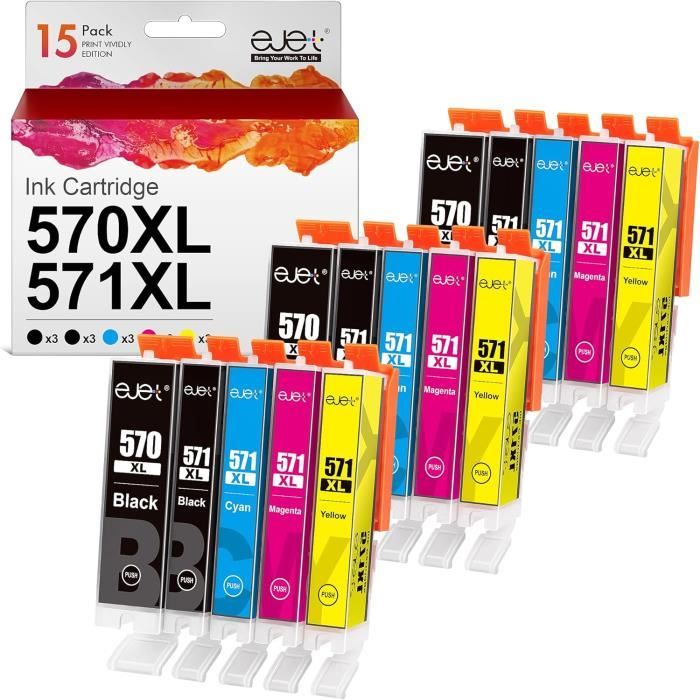 D&C 5X 25ml Noir XL Cartouches d'encre compatibles pour Canon PGI Pour Imprimantes PIXMA TS5050 MG5750 Etc STAROVER 5 Cartouche D'encre Compatible Canon PGI570 CLI570XL 571 571XL Avec Canon Pixma TS5050 Marque Bergsan Cartouche d'encre générique avec puce équivalente au modèle original Canon PGI-570PGBK XL (PGI570PGBKXL / 0318C001) de grande contenance pour imprimantes Canon... Compatible avec les imprimantes suivantes: Canon PIXMA MG 5750 TS 5050 MG5751 MG5752 MG 5753 MG 6850 MG6851 MG 6852 MG6853 TS5051 TS5053 TS 5055 TS 6050 TS 6051 TS6052 MG5700 MG6800 MG7750 MG7751 MG7752 MG7753 TS9050 TS9055 TS8050 TS8051 TS8052 TS8053 Tête d'impression QY6-0082, Compatible avec Les Imprimantes Canon MG5470, MG5500, MG5540, MG5650, MG5740, MG5750, MG5751 Et MG6600. Vendu par : amazon... Avec nos cartouches compatibles, vous économisez de l'argent. Volume cartouches d'encre: PGBK 500 pages, noir/cyan/magenta/jaune: 300 pages, 5 % de couverture par page (A4 / lettre).