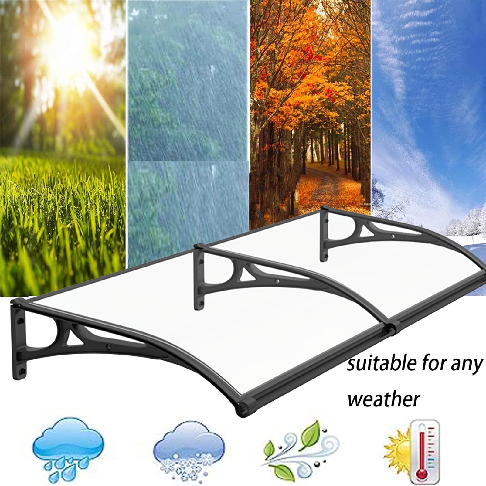 Assemblage et instructions : auvent de porte avant avec panneaux latéraux, fabriqué en feuille de polycarbonate robuste support en alliage d'aluminium base en acier au carbone haute résistance, ce qui rend l'auvent facile à assembler et à installer. Le paquet contient un ensemble complet d'accessoires nécessaires pour l'installation ✔ FACILE À MONTER : Notre auvent pour extérieur est facile à installer et est livré avec des instructions et le matériel de montage nécessaire pour une installation rapide. ✔ Domaines d'application : Il peut être installé sur des portes d'entrée, garages, balcons, fenêtres, vitrines, terrasses, portails de jardin, etc. Auvent Porte Entrée Polycarbonate EINFEBEN Auvent Pour Porte D'entrée - 150 X 100 Cm - En Polycarbonate Auvent Pour Garage Balcon ✔ Design Moderne et Classique : L'auvent a un aspect élégant, valorisant visuellement la façade, rendant différents types d'entrées un point focal, facile à entretenir et durable. Auvent pour porte marquise Auvent Marquise anti UV transparent... Résistance aux intempéries de -40°C à 120°C. Auvent de porte d'entrée marron 100 x 25 x 100 cm 03_0006379