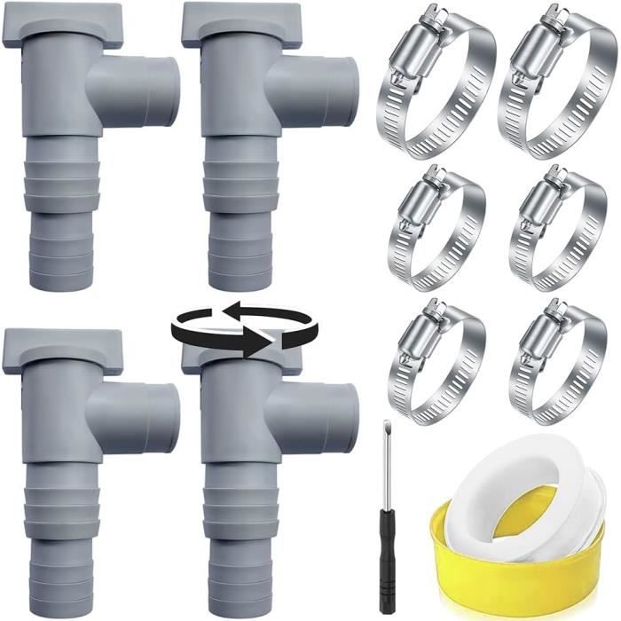 Lorsque « Open » est aligné avec la flèche, la vanne est ouverte ; lorsque « Close » est aligné, elle est fermée. Un léger écoulement au niveau du raccord du tuyau lorsqu'il est fermé est normal et ne pose aucun problème lors des travaux d'entretien. 【Facile à utiliser】La vanne d'arrêt de piscine de 32 mm est facile à installer. - Mode d'emploi : Tournez l'interrupteur pour ouvrir ou fermer la vanne. 【Remarque】La vanne d'arrêt d'entretien ne peut pas remplacer un bouchon si aucun système de filtration n'est connecté. - Avertissement : Le robinet d'arrêt de piscine de 32 mm ne peut pas remplacer les bouchons si aucun système de filtration n'est connecté. - Fonction : Le robinet d'arrêt d'angle de 32 mm facilite l'entretien de la piscine et du système de filtration. Vanne d'entretien-d'arrêt pour Piscine avec Raccord de Tuyau de 32-38mm, Vanne Piscine Double... Grâce à cette vanne d'arrêt de piscine, plus besoin d'actionner les bouchons ni de soulever la pompe, ce qui évite les fuites lors de l'ouverture du système. Le robinet d'arrêt de piscine de 32 mm résout ce problème et est compatible avec les tuyaux de 32 mm et 38 mm. 【Matériaux de haute qualité】Notre vanne d'arrêt de piscine de 32 mm est fabriquée en plastique durable et robuste, garantissant une longue durée de vie. Vanne Entretien Filtration Hors Sol Vanne D'entretien/d'arr¿¿t Pour Piscine Avec Raccord De Tuyau De 32mm,Robinet D'arr¿¿t Pour Accessoire Piscine Entretien Facile Vanne Pvc Pour Piscine Avec Embout De Tuyau DArrosage Robinet A Bille Filet Vanne A Boisseau Il suffit de la connecter aux raccords des accessoires de piscine à l'aide des colliers de serrage fournis, puis de raccorder les tuyaux du système de filtration aux vannes.