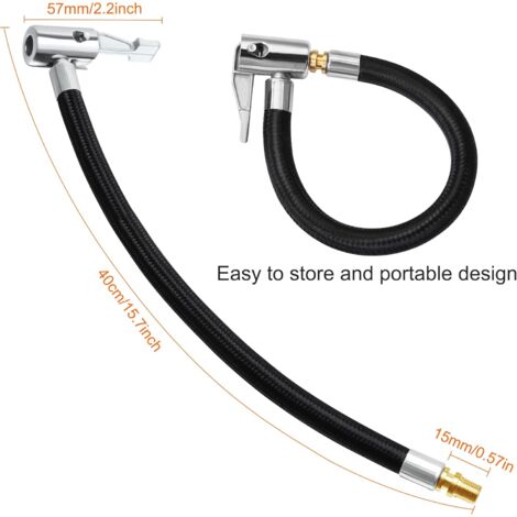 LbsAMP 2 Pièce Adaptateur de Valve Pneu Voiture, Gonfleur de Valve Tube Adoptez Un Tube Gonflable à Tresse Extérieure Résistant à La Haute Pression, Avec Une Résistance à La Pression Allant Jusqu'à 300 PSI. Mandrin Entièrement... Gonfleur Pneu Tube D'extension De Valve De Pneu Mandrin De Gonflage De Pneu Connecteur De Pomp Gonfleur Pneu Voiture 【Excellente Qualité】 Adoptez un tube gonflable à tresse extérieure résistant aux hautes pressions, avec une résistance à la pression allant jusqu'à 300 PSI. Convertissez le mandrin pneumatique à visser du gonfleur de pneu en mandrin pneumatique verrouillable. Tube D'Extension De Gonfleur De Pneu Pompe À Pneu Adaptateur De Mandrin De Gonflage Rapide Tuyau... 【Raccord Fileté Standard】Raccordement à filetage fin standard (5/16 po x 32TPI), le même que le filetage sur toutes les tiges de valve de voiture standard, compatible avec le filetage intérieur du mandrin pneumatique à visser. Tuyau en caoutchouc renforcé de haute qualité, durable et flexible. Bouche à connexion rapide, structure robuste, belle et brillante, pas de taches. 【Facile à Utiliser】 Le mandrin à air comprimé à 90 degrés à débit ouvert permet un gonflage mains libres facilement et rapidement.