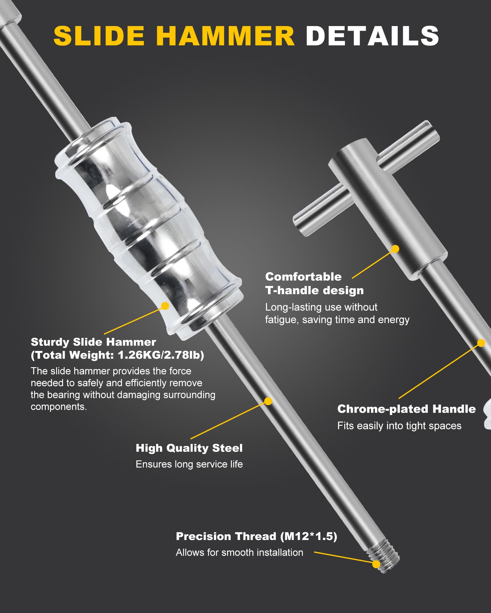 VINGVO ensemble d'extracteurs de marteau à glissière Ensemble d 9 Pièces Extracteur Roulement Interne, Trou Borgne, Outil D’Extraction... Extracteur Pour Réparation Auto Ensemble D'extracteur De Roulement Intérieur, 9 Pièces En Alliage D Extracteur De Roulement Borgne L'outil élimine efficacement les bagues et les roulements avec des diamètres intérieurs allant de 8 mm à 32 mm, ce qui le rend adapté à divers scénarios de réparation de véhicules. Le système de serrage interchangeable permet de sélectionner la taille appropriée pour chaque tâche spécifique de retrait de roulement. VEVOR Enseble d'extracteurs de rouleent à trou borgne, kit d... Construit en acier durable, cet extracteur offre une performance fiable dans les environnements d'atelier exigeants. Pour un fonctionnement optimal, cet outil nécessite une utilisation avec un marteau coulissant standard (vendu séparément). Système de serrage interchangeable : plusieurs tailles de pince permettent de sélectionner l'outil précis pour chaque tâche spécifique de retrait de roulement. Construction en acier robuste : fabriqué à partir d'acier durable qui résiste à une utilisation répétée dans des environnements de réparation automobile exigeants.