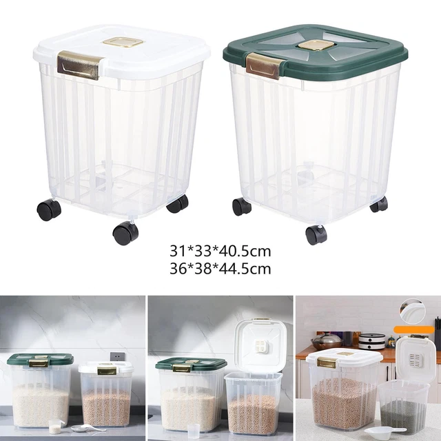 WOWFUNNY Distributeur de céréales, distributeur de riz rotatif de 9 L Seau Hermétique Cuisine 5kg Yuthsona Distributeur De Riz, Conteneurs De Riz, Seau à Riz Scellé Résistant à L'humidité Avec Tasse à Mesurer, Récipient De Rangement Pour Farine De Soja à Gros Grains Pour Cuisine, Garde-manger Stockage Alimentaire Sans BPA Grande capacité : le seau distributeur de céréales peut contenir jusqu'à 5 kg de riz, adapté pour un usage quotidien familial, avec une capacité modérée pour un rangement et un accès faciles Conception conviviale: les conteneurs de rangement de cuisine sont livrés avec une petite cartouche sur le couvercle, qui vous permet de mettre un anis étoilé, de l'ail, du désoxidant pour éloigner les insectes., ., Le panneau à échelle claire garantit une identification facile du contenu et du volume restant, offrant une expérience de stockage sans tracas. L'étanchéité est excellente grâce au joint en silicone qui protège de l'humidité et des insectes. La tasse mesure de 500ml incluse est très pratique pour doser... Organisation de la cuisine: dites au revoir à l'encombrement et bonjour à une cuisine bien organisée avec notre conteneur de rangement de riz., ., Profitez de la commodité d'avoir vos ingrédients de base soigneusement stockés et facilement accessibles, ce qui rend votre cuisson et la préparation des repas., ., Améliorez votre organisation de cuisine avec ce distributeur de riz scellé sans BPA - un incontournable pour chaque chef domestique. Pour les aliments secs: cette distribution de riz polyvalente convient au stockage d'une variété d'aliments tels que le riz, la farine, les céréales, les céréales, etc., ., Un incontournable pour chaque cuisine, offrant un stockage suffisant et préservant la fraîcheur de vos ingrédients essentiels., ., Élevez votre organisation de cuisine avec cette solution de stockage pratique et pratique.