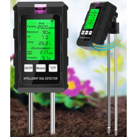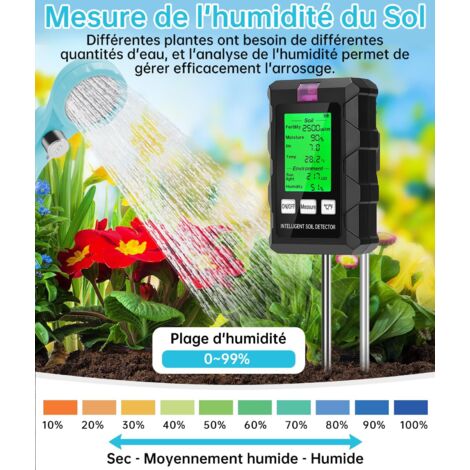 Détecteur d'humidité du sol plantes fleurs sol ana... – Grandado Sonde Acier Inoxydable Testeur D'humidité Du Sol, Appareil De Mesure Du Sol 6 En 1, Détection Appareil Mesure PH Humidité Sol Ce testeur de sol multifonction offre une analyse complète et mesure avec précision cinq paramètres clés : la teneur en humidité, la température, le pH... 🌱 [ TESTEUR DE SOL 5-EN-1 ] Mesure la température, l’humidité, la fertilité, le pH et l’intensité lumineuse – pour une meilleure germination, des racines saines, un arrosage précis, une fertilisation optimale et le bon choix d’emplacement. TESTEUR D'HUMIDITÉ ET de pH portable du sol pour un soin efficace des... 🌸 [ POUR TOUS LES AMOUREUX DES PLANTES & COMME CADEAU ] Que ce soit au jardin, sur la pelouse, en serre ou sur le balcon : un outil idéal pour une croissance saine et aussi une excellente idée cadeau pour tous les passionnés de jardinage. ♻️ [ ROBUSTE & RÉUTILISABLE ] Équipé de sondes en acier inoxydable pour des mesures précises et fiables – réutilisable sans bandelettes, utilisable à l’intérieur comme à l’extérieur.