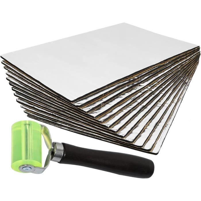 Matériau de haute qualité : le tapis isolant autocollant est fabriqué à partir de feuilles d'aluminium et de matériaux en caoutchouc de haute qualité, qui ont une résistance élevée à l'usure et à la chaleur, une résistance à l'eau et au feu, une forte adhérence, une longue durée de vie et une longue durée d'utilisation. Il peut être utilisé pour l'isolation acoustique, l'isolation thermique et la protection contre les incendies à l'intérieur et à l'extérieur de la voiture. Large application : le tapis d'isolation pour voiture peut être largement utilisé dans les hottes, les pare-feu, les portes, les cloisons intérieures et extérieures, etc. Spécifications: Matériau : film d'aluminium + caoutchouc mousse + film adhésif Couleur : argenté. Isolant Acoustique Lot De 12 Tapis D'isolation Phonique Pour Créez un environnement de conduite confortable pour vous. Le tapis isolant autocollant est fabriqué en film d'aluminium de qualité supérieure et en caoutchouc, ce qui peut réduire efficacement le bruit et les vibrations dans la voiture, et peut également bloquer le moteur, l'échappement et la chaleur estivale, de sorte que votre voiture soit chaude en hiver et fraîche en été. Lot de 6 panneaux acoustiques en mousse avec 12 rainures pour isolation phonique et insonorisation - 30 x 30 cm - 25 mm - Noir[290]. 19,90 € · Lot de 36... Le tapis d'isolation pour voiture peut également être utilisé dans d'autres domaines. La taille de ce tapis isolant autocollant est de 40 cm x 25 cm, qui est facile à découper et à installer en fonction de la structure spécifique et de la partie du véhicule, et il peut être appliqué de manière flexible à tous les types de modèles de voitures et d'intérieurs. Le tapis isolant pour voiture se découpe facilement pour s'adapter à différentes formes de surface. Isolation Phonique Auto Lot De 12 Tapis D'isolation Pour Voiture 5 Mm En Aluminium Et Butyle Réduction Bruit Vibration Habitacle Isolant thermique de voiture SOURCING MAP Tapis d'isolation acoustique... Offrez-vous une expérience de conduite confortable.