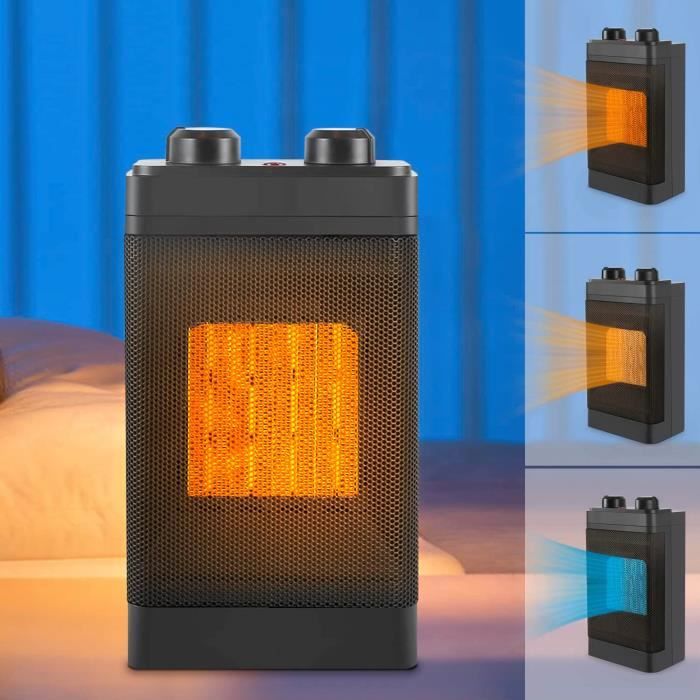 Mini Radiateur Soufflant à Économie d'Énergie Chauffage Soufflant Électrique Radiateur Soufflant Compact et portable, il est idéal pour les petits espaces tels que la maison, le bureau, la chambre, le salon et la cuisine. Avec une protection contre la... Radiateur Soufflant électrique Chauffage Électrique À Économie D'énergie En Céramique 600 W,Radiateur Chauffage Minuterie 1/2/4/8 Heures Chauffe-eau électrique avec 3 modes de fonctionnement 800W/1200W/1500W. 【Oscillation à 60°】 Un large angle de 60° oscillation latérale du radiateur soufflant économie d'énergie non seulement augmente la répartition de la chaleur pour chauffer uniformément votre pièce, mais aussi ne pas gaspiller de chaleur pour tout le monde confortable et chaud. Ce mini radiateur soufflant à économie d'énergie de 1500 W offre un effet cheminée électrique, créant une ambiance chaleureuse grâce à ses flammes dansantes 3D et ses sons crépitants relaxants Le chauffage d'intérieur émet moins de 36 dB de bruit. 【Protection contre la surchauffe】 Mini radiateur portable avec protection contre la surchauffe, s'éteint automatiquement en cas de surchauffe, basculement à 45°. 【Large application】Notre chauffage électrique est le choix parfait de cadeau d'hiver pour apporter de la chaleur dans l'hiver froid. Le radiateur personnel portable dispose de trois niveaux réglables, mode air doux, mode air chaud, mode air chaud fort