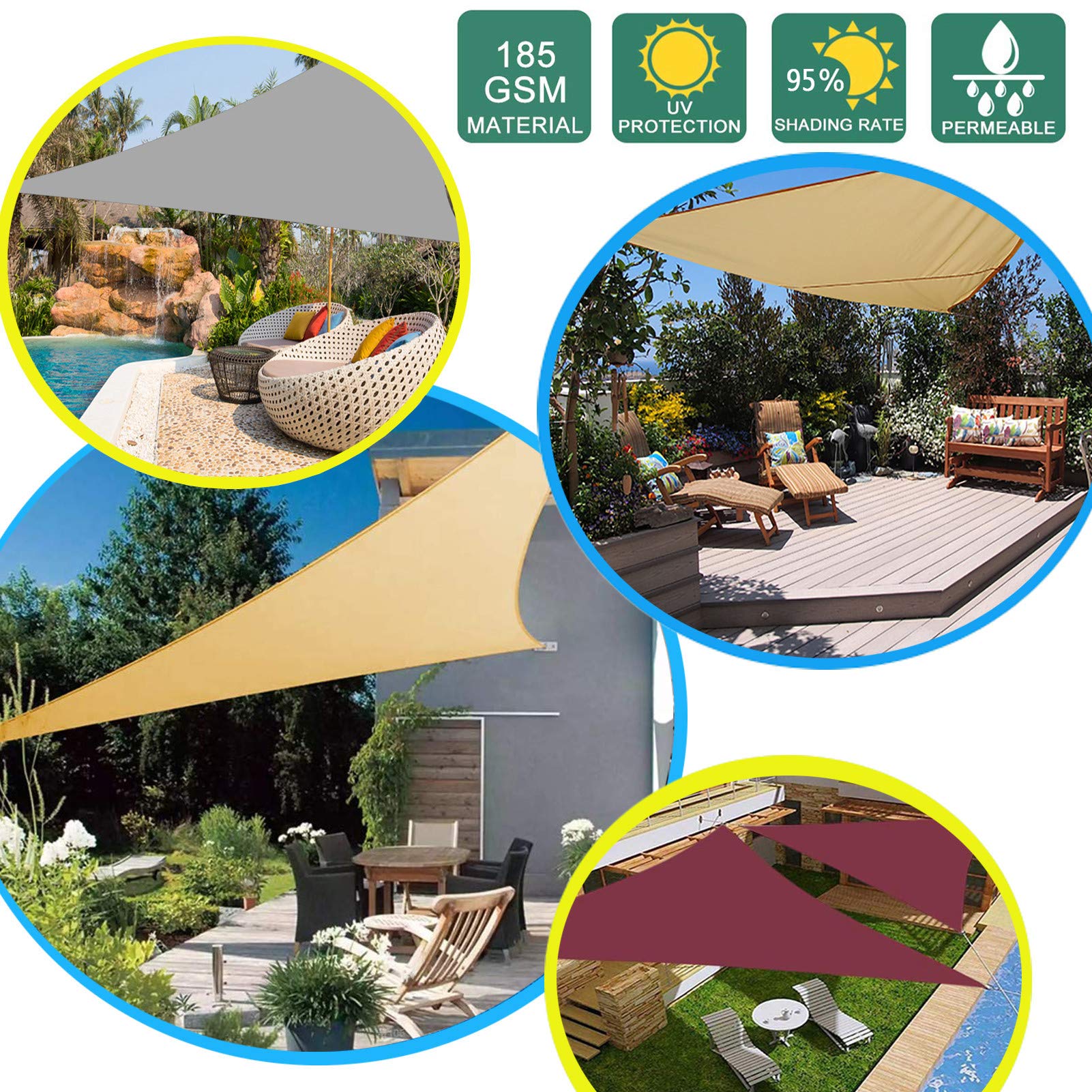 Auvent pour un été parfait. Store Extérieur Imperméable UV Voile D'ombrage 3x3x4,25 Mètres Triangulaire En HDPE Auvent Pour Jardin Corde Incluse BNWRRCVKE Matériaux : Polyester, PU enduit Dimensions : 3 x 3 x 3 m Coloris : Beige Caract¨¦Coupe-vent, imperméable, respirant Donner : 4 fenêtres (230 cm chacune) peuvent être montées rapidement et facilement. Voile ombrage 3x3 Voile ombrage 3x3 : la sélection produits Leroy Merlin de ce dimanche au meilleur prix ! Retrouvez ci-après nos 3672 offres, marques, références et promotions en stock prêtes à être livrées rapidement dans nos magasins les plus proches de chez vous Protection solaire imperméable : pendant les saisons chaudes et pluvieuses, le voile d'ombrage imperméable est le meilleur choix en raison de sa résistance au vent et à l'eau. Le tissu respirant est perméable au vent, le balcon avec voile d'ombrage empêche l'accumulation de chaleur et assure une circulation constante de l'air sous le pare-soleil, pare-soleil avec voile d'ombrage spécialement pour une utilisation en extérieur. Voile d'ombrage triangulaire imperméable 3 x 3 x 3 m - Bloque 98 % des rayons UV - Pour extérieur - Gris clair - Corde incluse · Gris Clair · Couleur Crème. · Vert... Pare-soleil pour balcon, voile d'ombrage, pare-soleil. Matériau de haute qualité : auvent imperméable fabriqué en fibre de polyester haute densité 100 % tissu de store triangulaire avec revêtement PU, notre auvent offre non seulement une résistance exceptionnelle à la déchirure et aux intempéries, l'auvent triangulaire mais bloque également plus de 90 % des rayons nocifs. Store de balcon sans perçage. Voile d'ombrage 3x3m - Soldes Jardin 4 cordes de vent de 230 cm chacune. Elle peut être utilisée n'importe où sur le balcon, la protection contre le vent, le balcon de la terrasse, le jardin, le camping ou le bac à sable comme écran d'intimité ou d'ombre.