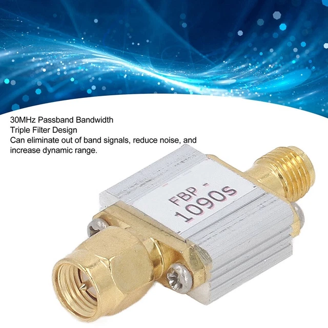 Caractéristiques : Nom de la pièce : filtre de passage Modèle : FBP-1090s., Matériau : métal., Dimensions : voir photo., Couleur : voir photo., Impédance : 50 ohms. Perte d'insertion : 1,7-2,2 dB. 【Performance ADS-B améliorée】Avec le récepteur ADS-B 1090 MHz, ce filtre élimine les interférences hors bande, améliore la portée et le décodage ADS-B, et améliore les performances globales. * Facile à installer : poids léger, petite taille, facile et rapide à installer. Optimisez la réception ADS B avec filtre passe-bande 1090 MHz Passage (largeur 1 dB) : 11 MHz 3 dB de large : Largeur : 40 dB : 25 MHz. * Fiable à utiliser : le récepteur ADS B 1090 MHz peut efficacement éliminer les bruits extérieurs, réduire le bruit et augmenter la plage dynamique. Ce filtre 1090 Mhz ADS-B passe-bande/coupe-bande pour améliorer les performances en réception ADS-B et supprimer les signaux parasites en dehors de la bande... Installation facile : avec sa légèreté et sa petite taille, le filtre passe-bande est facile et rapide à installer, permettant une intégration parfaite dans votre système ADS-B. * Largeur de 30 MHz : le filtre peut avoir une largeur de passage de 30 MHz et des caractéristiques de coupure raide. Contenu de l'emballage : 1 filtre passe-passe. Amélioration Récepteur ADS-B Filtre Passe-bande En Guide D'ondes De 30 GHz à 40 GHz : Série PE-W28 | PASTERNACK Accessoire SDR ADS-B Fiable à utiliser : le récepteur ADS B 1090 MHz peut éliminer efficacement la hors bande, réduire le bruit et augmenter la plage dynamique. * Haute efficacité : la gamme ADS B et le décodage sont grandement améliorés, pour ce qui rend les performances de travail stables, efficaces et très fiables 【Fonctionnement fiable et stable】Le design unique de triple filtre empêche la surcharge des signaux hors bande forts, assurant un fonctionnement fiable et stable du récepteur.
