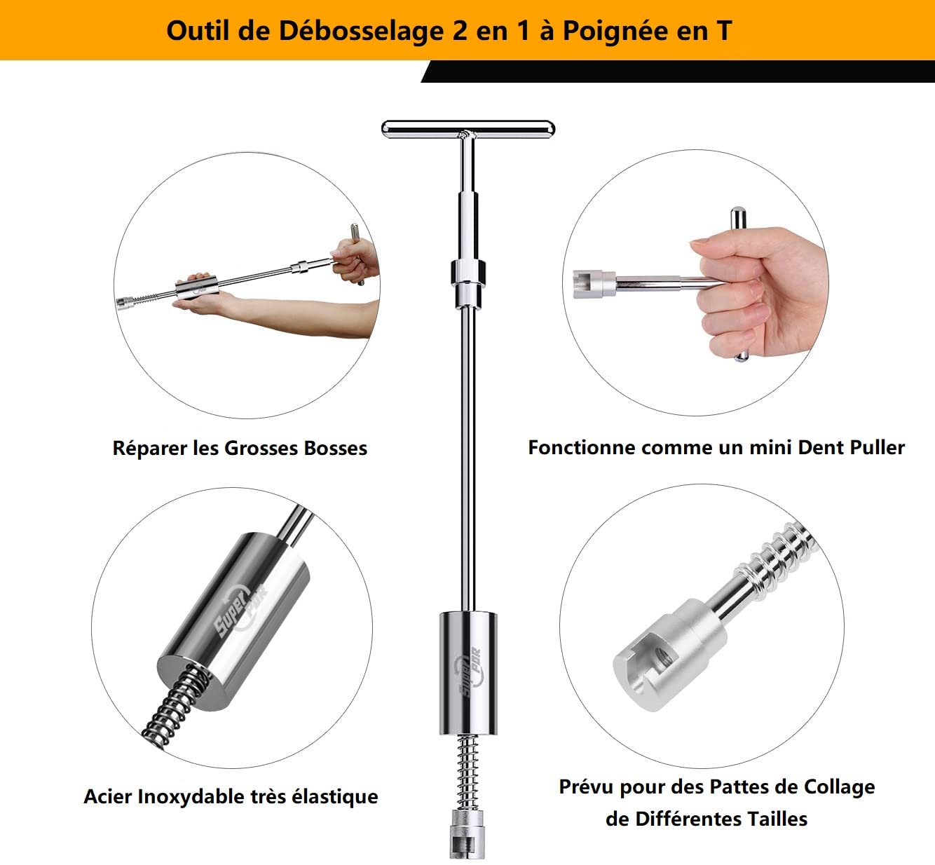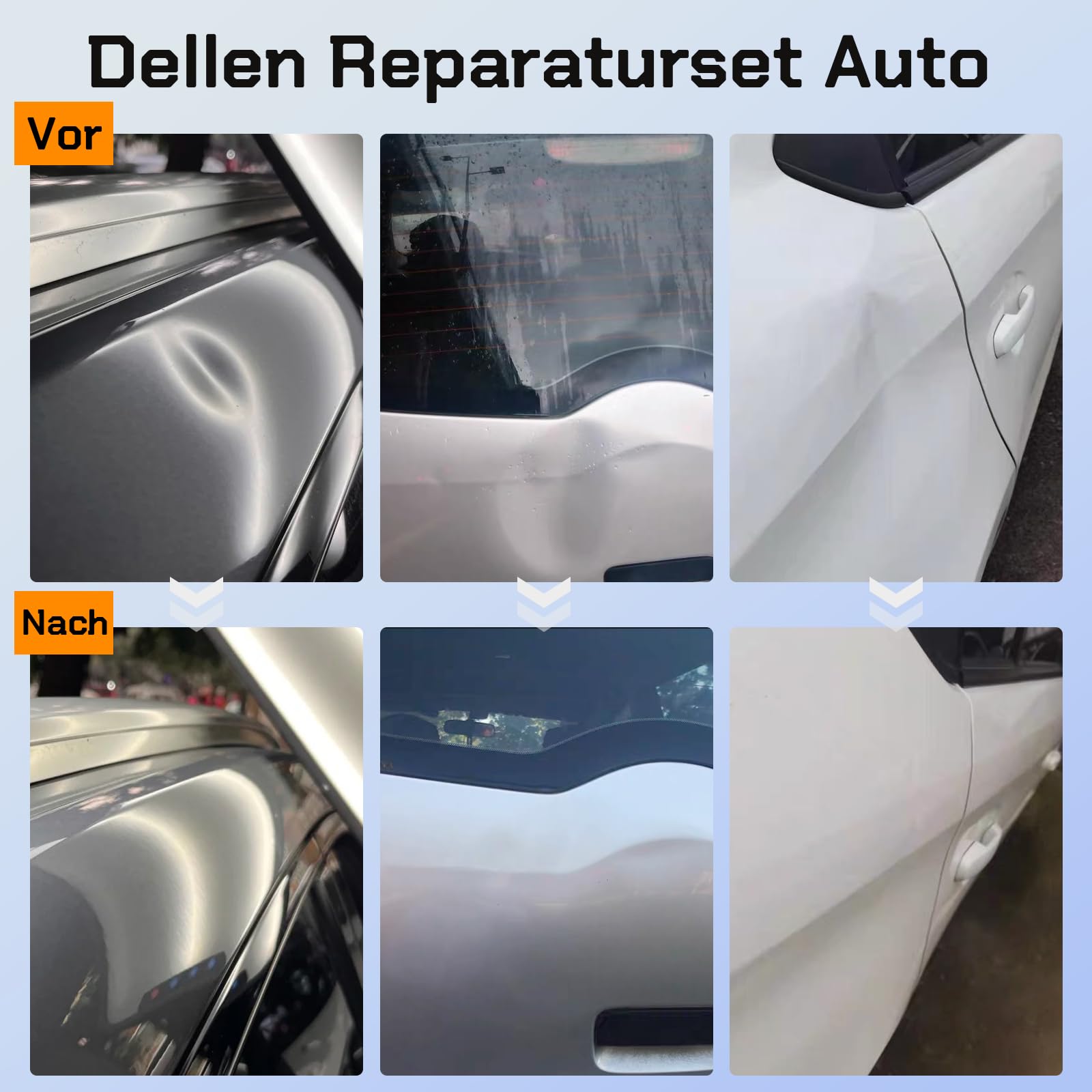 Idéal pour ceux qui ne veulent pas se rendre dans un atelier tout en souhaitant obtenir des résultats professionnels. Vous économisez ainsi du temps et des coûts tout en gardant votre véhicule en parfait état. Kit Réparation Bosses PDR TOOLS Kit D'outils De Réparation De Bosses De Voiture Pour Carrosserie De Véhicule - Kit Professionnel De Réparation De Dommages De Peinture - Élimination Des Bosses Sans Peinture, Pour Outil Débosselage Sans Peinture Nos outils de réparation Autodent peuvent éliminer 99 % des bosses de votre voiture en 30 minutes. Que vous soyez débutant ou professionnel, vous pouvez... Facile à utiliser et rapide à utiliser - Convient même pour les débutants. Ce kit d'outils de réparation de bosses professionnel est la solution idéale pour éliminer les bosses et les bosses petites à moyennes dans la carrosserie de la voiture. Idéal pour les ateliers automobiles, les peintres et les bricoleurs ambitieux qui apprécient les résultats professionnels. Vous obtiendrez des résultats rapides et réduisez les efforts, ce qui vous fait économiser du temps et de l'argent. Le kit a été conçu dans le but de rendre l'application aussi simple que possible. Les outils robustes sont fabriqués à partir de matériaux de haute qualité et permettent aux utilisateurs débutants et expérimentés de réparer les bosses de manière professionnelle. Rapide et gain de temps : parfait pour les réparations à la maison. Le kit est livré dans une mallette de rangement pratique qui organise tous les outils de manière claire et sûre. Il permet de réparer les bosses sans démonter ou repeindre, ce qui le rend idéal pour les réparations rapides. Suivez les instructions dans le manuel d'utilisation pour chaque outil afin d'obtenir les meilleurs résultats Chaque étape est claire et compréhensible, de sorte que vous pouvez facilement enlever les bosses en tant que bricoleur. Avec ce kit de réparation, vous pouvez enlever vous-même les bosses en quelques minutes et vous n'avez pas besoin d'attendre des heures pour un rendez-vous dans l'atelier. Les poignées ergonomiques assurent une manipulation confortable pendant le travail. Kit de Réparation Carrosserie Automobile | Outils PDR pour