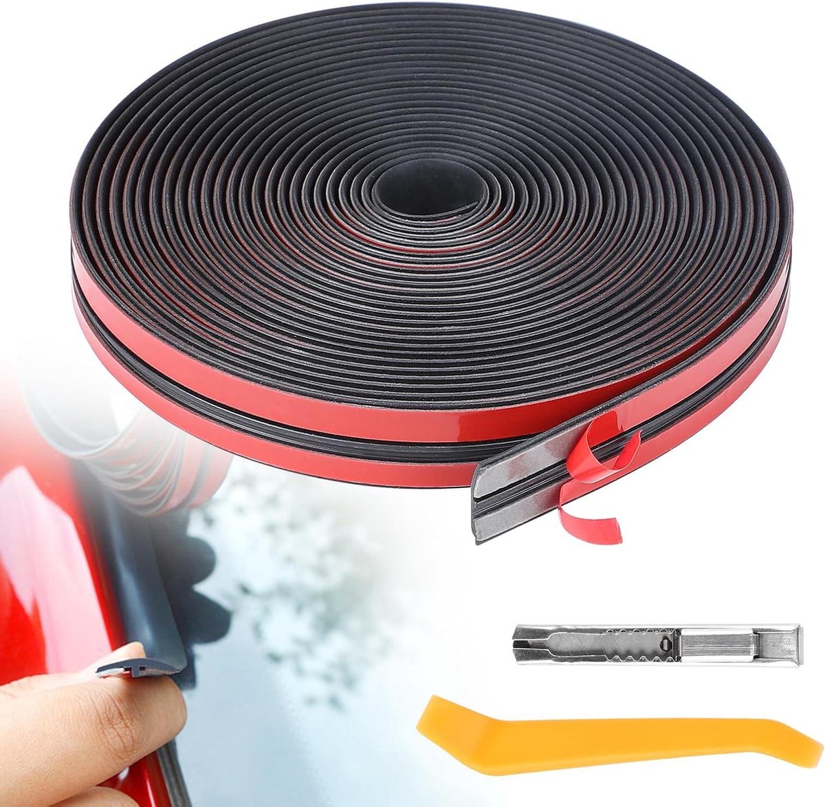 Joint Pare Brise Voiture Storystore Joint D'étanchéité En Caoutchouc Pour Voiture - 14 Mm X 8 M Joint Caoutchouc Voiture T fort Hébergement industrie epaisseur seuil de porte enchères Sans valeur sarcome Storystore Joint d'étanchéité en caoutchouc pour tableau de bord de... La garniture de joint en caoutchouc pour pare-brise adopte un design de ruban adhésif double face, a une bonne adhérence, et peut directement coller le ruban adhésif sur la voiture., Étapes d'installation : 1., Nettoyez l'endroit à installer avec un chiffon., 2., Après séchage et nettoyage, retirez le film rouge., 3., Appuyez dessus sur la position d'installation, puis coupez la bande d'étanchéité en caoutchouc T de voiture. Lieu d'installation : cette bande d'étanchéité pour pare-brise de voiture est principalement utilisée pour les toits ouvrants de voiture, les pare-brise avant et arrière, etc. Il est adapté à la plupart des voitures, camions, etc. La bande d'étanchéité en caoutchouc de voiture a une forte adhérence et étanchéité, et un bon effet de protection, qui est largement utilisée comme joint de porte de voiture et bandes d'étanchéité de pare-brise avant. Facile à installer : ce joint en caoutchouc pour pare-brise est livré avec du ruban adhésif, aucun outil supplémentaire n'est nécessaire, il suffit de coller la bande d'étanchéité directement sur l'espace entre le pare-brise ou le toit ouvrant et la carrosserie. Contenu de l'emballage : le colis contient un rouleau de joint en caoutchouc pour pare-brise, mesurant 14 mm de large, 8 m de long ; un rouleau de joint en caoutchouc pour pare-brise, mesurant 19 mm de large, 8 m de long. Différentes largeurs peuvent être utilisées pour différentes positions. Facile à installer : ce joint en caoutchouc pour pare-brise est livré avec du ruban adhésif, aucun outil supplémentaire n'est nécessaire, il suffit de coller la bande d'étanchéité directement sur l'espace entre le pare-brise ou le toit ouvrant et la carrosserie