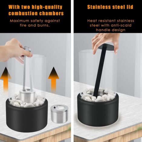 SpécificationNom du produit : cheminée à l'éthanol. Cheminee De Table Bioethanol Interieur, Flamme Tornade, Lampe De Tables pour Table De Nuit, Chambre, Maison, Fêtes d'anniversaire - Bricolage Une utilisation sûre dans différentes positions est rendue possible grâce à la base fiable. Cheminée De Table éthanol Cheminée à L'éthanol, Feu D'intérieur Tornade, Flamme Réelle Rotative, Chauffage D'ambiance | Leroy Merlin Décoration Ambiance Chaleureuse La flamme réglable, rappelant une tornade fascinante, ajoute de la chaleur et du charme à ce brasero portable dans votre maison, votre balcon, votre chambre ou même à l'extérieur, comme dans le jardin ou en pique-nique. Matériel: métalSpécifications: 16x2 8cm/16x40cmTaille du produit :R : env., 16x16x28 cmB : env. La cheminée bio TORNADO est conçue en acier et verre trempé, en noir et elle dispose d'un réservoir de 0,28L. Il offre également une nouveauté exclusive: sa... L'éclairage contribue à créer une atmosphère chaleureuse et rend toute activité de loisir plus agréable en fournissant une lumière confortable dans différents scénarios. Cela garantit une protection thermique fiable pour un fonctionnement stable à long terme et réduit considérablement le risque d'accident lors des garden-partys sociales ou des soirées agréables sur la terrasse. Cheminée de table à l'éthanol avec flamme à effet tornade 118,99 €Le prix d'origine était de : 118,99 €. 42,84 €Le prix actuel est de : 42,84 Construction de conception étanche : ce brasero de table d'extérieur a une structure spéciale étanche, qui empêche efficacement la source d'énergie de se renverser. 16x16x40 cmPoids du produit : env. La conception étanche offre une sécurité supplémentaire et rend le produit idéal pour une utilisation en extérieur Découvrez l'atmosphère accueillante d'un foyer de table de jardin, idéal pour rehausser n'importe quel espace grâce à son design décoratif et fonctionnel. Il optimise l'ambiance, fournit un éclairage fonctionnel pour la lecture et crée un espace invitant à la détente et au divertissement.