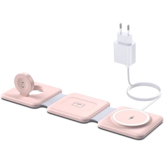 Charge Rapide Smartphone Montre écouteurs INN Station De Charge 3-en-1 15W Chargement Rapide Sans Fil Interface Press Play Chargeur sans fil pliable magnétique 3-en-1 avec Qi2 | CA Station de Charge 3 en 1 - SANAG - Pliable - Compatible iPhone 15-11 La technologie de charge sans fil élimine l'encombrement des câbles tout en assurant une charge stable et sécurisée pour vos appareils. Découvrez la montre connectée, écouteur et chargeur ultra minimalistes... Pratique et polyvalente, cette station de charge représente la solution idéale pour garder vos appareils toujours prêts à l'emploi. Sa conception pliable intelligente la rend parfaitement portable et adaptée aux voyages, tout en optimisant l'espace sur votre bureau ou table de chevet. Compatible avec les derniers modèles de téléphone, cette station offre une expérience de charge fluide et efficace. Découvrez la solution ultime de recharge avec cette station de charge sans fil 3 en 1 innovante.