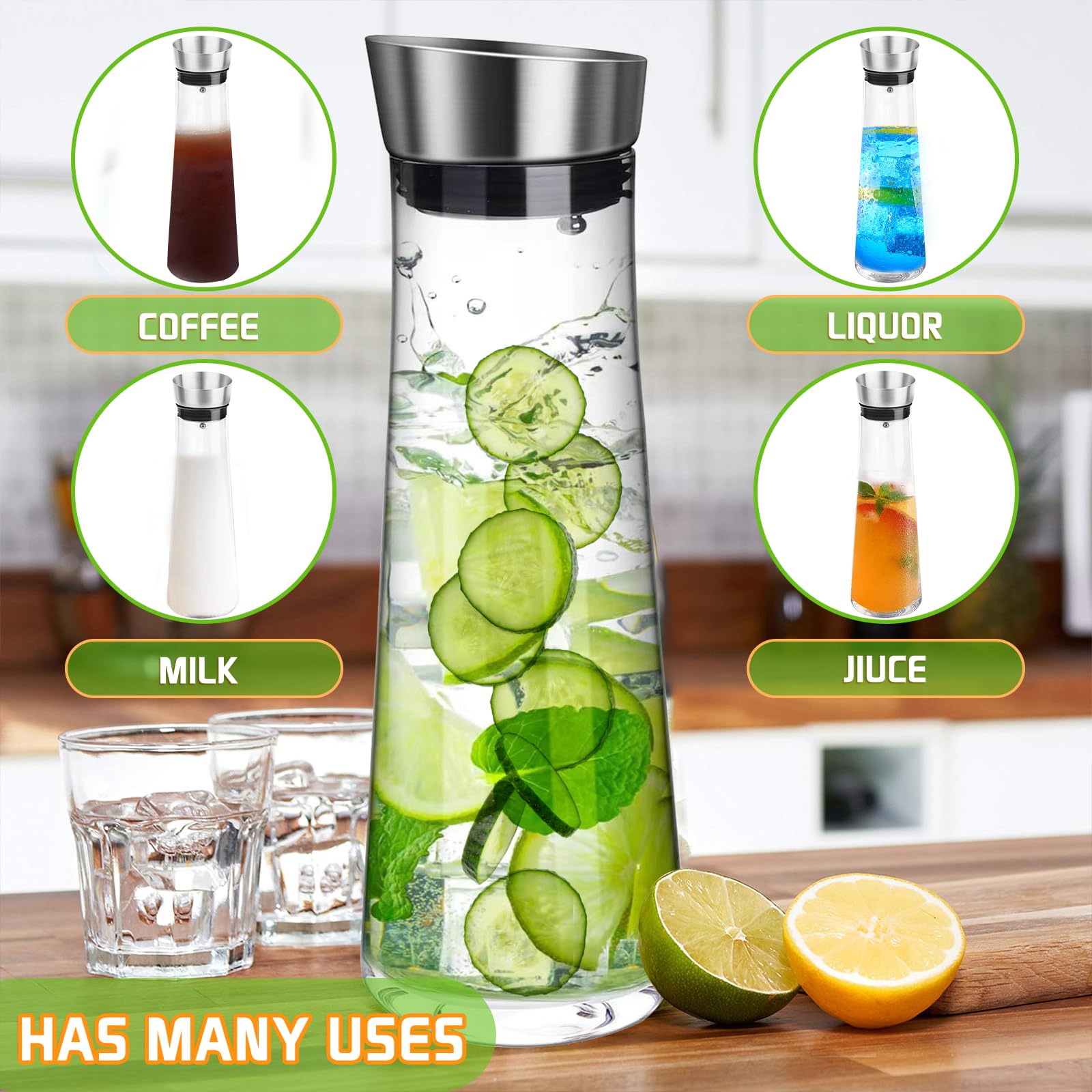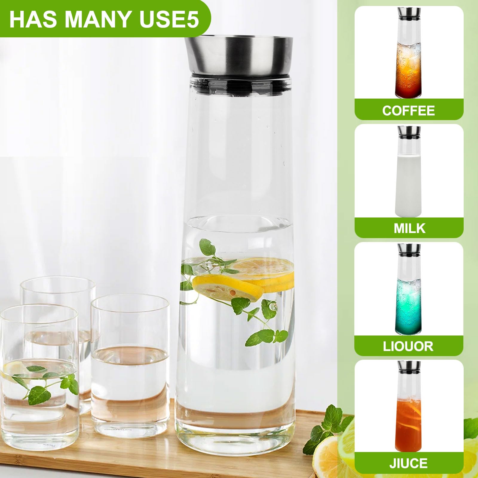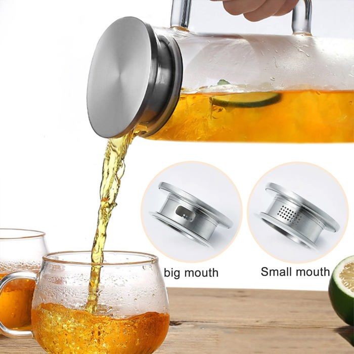 La carafe à large ouverture est facile à nettoyer. Elle répond à tous les besoins quotidiens en matière de boissons. La carafe eau en verre est dotée d'une poignée large et épaisse qui ne chauffe pas après avoir été chauffée. Il peut supporter des températures comprises entre -20 °C et 150 °C, offrant une excellente résistance à la chaleur et au froid, et peut être utilisé en toute sécurité dans le réfrigérateur et pour le chauffage (il faut retirer le couvercle lors du chauffage). Carafe à eau en verre borosilicate de 1,5 litre Le couvercle est équipé d'un joint en silicone de qualité alimentaire qui empêche le couvercle de tomber lors du versement. Le bouteille verre spécialement conçu est plus pratique. Carafe à eau en verre de 1,5 litre, carafe en verre et couvercle en acier inoxydable, bouilloire en verre borosilicate épais, bouilloire résistante à la... Elle est idéale pour le thé de l'après-midi, les fêtes, les anniversaires, les barbecues ou un usage quotidien. Carafe Verre de Qualité Supérieure: ce carafe eau verre est fabriqué à partir de verre borosilicaté de haute qualité, plus épais et plus résistant que le verre ordinaire. Couvercle en Acier Inoxydable Pratique: le couvercle est en acier inoxydable 304, ce qui lui confère une meilleure texture et le rend résistant à la rouille. Bouteille Sodastream Verre Ezvsevuo Carafe à Eau En Verre 1.5 Litre Avec Couvercle En Bouteille Verre 1,5l Convient pour l'eau froide et chaude, légère, peut supporter des températures de -30 degrés à 150 degrés, vous pouvez donc verser de l'eau bouillante en toute... Le couvercle est équipé de deux becs verseurs qui permettent de filtrer facilement la pulpe et de répondre à différents besoins en matière de boissons.
