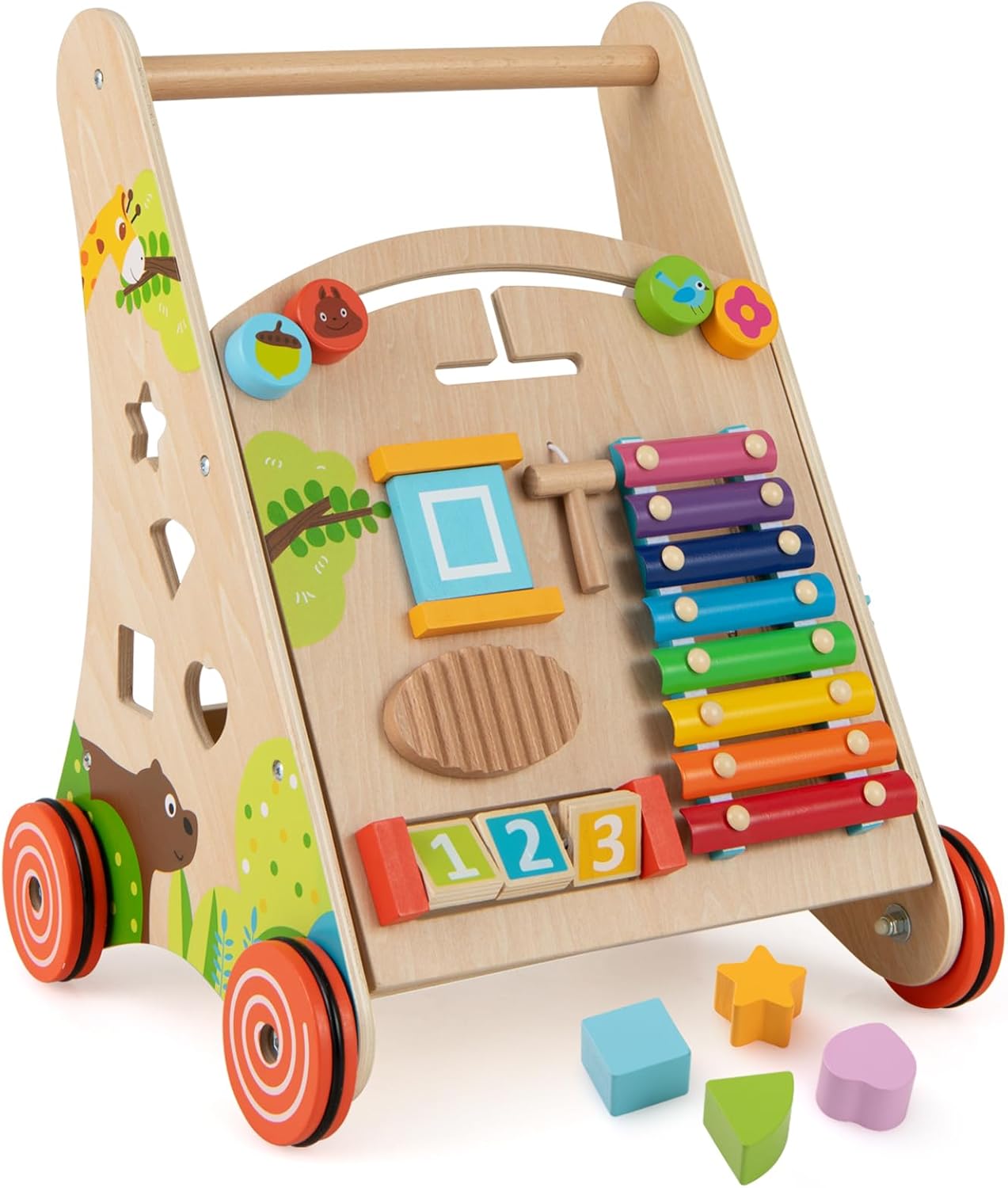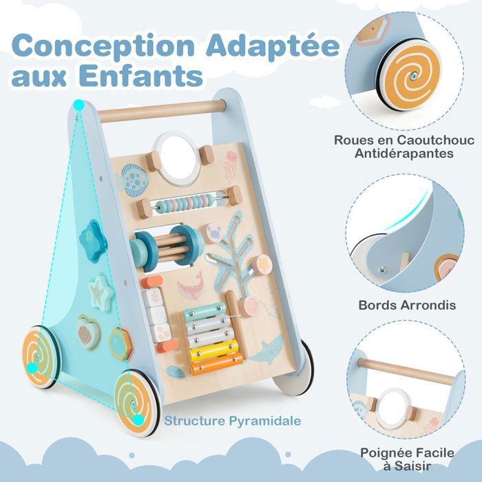 Avec ce jouet d'apprentissage de la marche, votre bébé pourra marcher plus facilement et plus efficacement. Déambulateur bébé : Chariot bois & jeu de construction enfant Fabriqué à partir de matériaux de haute qualité, vous pouvez faire confiance à la durabilité et à la fiabilité de notre trotteur. Trotteur Montessori Activités Multiples 7 En 1 Chariot De Marche En Bois Avec Boîte De Rangement Marcheur D Chariot Marche Bébé Des labyrinthes de perles stimulants aux blocs amusants à retourner en passant par un jeux de perles, chaque fonctionnalité est conçue pour offrir des heures infinies de plaisir éducatif. Votre petit chéri en a besoin. chariot de marche bois bebe camion pompiers labebe Guide d'achat... En outre, le chariot de marche est doté d'un espace de rangement à l'arrière où bébé peut ranger ses jouets préférés. Cela aide à développer la coordination œil-main et les compétences cognitives de votre bébé. Ce trotteur DREAMADE est un coup de cœur pour les bébés dès 1 an ! En bois solide (MDF et contreplaqué), il est stable et sécurisé avec ses coins arrondis Centre d’Activités Ludique — Ce marcheur d'apprentissage multifonctionnel comprend une série d’activités d’apprentissage interactives : jeux de perles, xylophone, engrenages rotatifs, miroir, labyrinthe de perles, blocs à bascule, labyrinthe et trieurs de formes. Équipé d'une poignée facile à saisir et des roues lisses Développe une bonne posture de marche et évitez les jambes en forme de O Exercer la capacité d’enfant à apprendre à marcher, les capacités perceptives et motrices Grand espace de rangement pour les jouets à l’arrière Montage est un jeu d'enfant avec des instructions claires Spécifications : Couleur : Multicolore Matériau : MDF, contreplaqué, bois massif Dimensions du produit : 33 x 32 x 51 cm (L x l x H) Âge adapté : 3 ans et plus Poids net : 2 kg Livraisons : 1 x Trotteur bébé 3 x Blocs de forme 1 x Maillet 1 x Mode d'emploi Attention: Les livraisons se font en France métropolitaine à l'exception des départements d'outre-mer. Améliorer Les Capacités Motrices — Pour les bébés qui viennent d'apprendre à marcher, le chariot de marche est d'un jouet très nécessaire, en les aidant à éviter les jambes arquées et en facilitant leur développement. Description : Cette trotteur combine les fonctions d'un marcheur d'apprentissage pour bébé et d'un centre d'activités, offrant de multiples options de jeu, parfait pour l'apprentissage précoce et le développement de la marche. Déplacement Facile & Espace de Rangement — Le trotteur est équipé d’une poignée facile à saisir et de roues lisses pour assurer stabilité et équilibre pendant que votre bébé apprend à marcher.