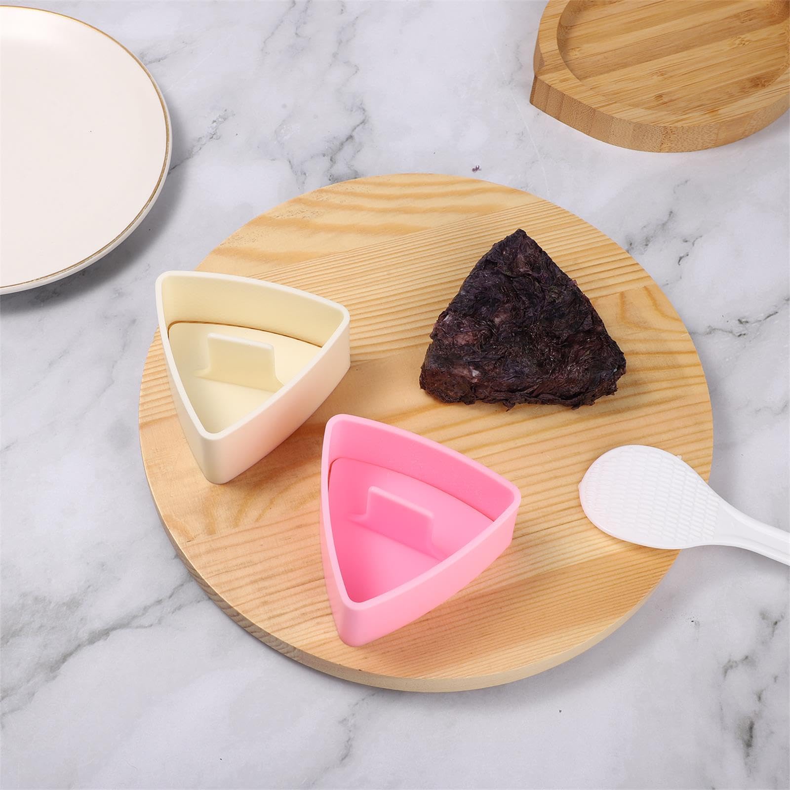 Large utilisation : accessoire parfait pour les amateurs de sushis, adapté pour la place à sushi, le restaurant, la cuisine japonaise, la maison, le bureau, les pique-niques. Cuillère à Riz Triangle Onigiri Moule à Sushi 6 Moules Triangulaires (3 Grands Et 3 Petits), Avec 1 Cuillère à Riz, Kit à Sushis à Faire Soi-même, Outil Pour Les Débutants à La Maison Moule Riz Spécification : Matériau : plastique., Couleur : blanc. Fabriqué en plastique sans BPA, sans danger pour la santé, vous pouvez l'utiliser en toute confiance. Utilisation simple : il suffit de verser le riz à sushi dans le moule, puis de placer le couvercle sur la boîte et de le maintenir fermement La surface est lisse et sans bavures, le matériau épais ne se déforme pas facilement et peut être réutilisé Facile à utiliser : versez le riz et les autres ingrédients dans les moules Onigiri, fermez le couvercle et appuyez fermement. Description Pour faire des onigiris (boules de riz japonaises) facilement à la maison ! Ce set Vuteukis inclut 6 moules triangulaires (3 tailles différentes) et une cuillère à riz. Juste à remplir de riz, presser, et démouler pour avoir des formes parfaites. Parfait pour les lunchboxes, les pique-niques, ou pour impressionner tes invités. En plastique food-safe, facile à laver. Un... Ensemble double : 3 grands moules à sushis et 3 petits moules à sushi avec 1 cuillère à riz. Dimensions (L x l x H) : env., 7,6 x 4,2 cm. Les boules de riz moulées se retirent facilement en appuyant sur le fond Moule à Onigiri Kit Fabrication Sushi 6 En 1 - 3 Grands Et 3 Petits - Cuillère à Riz Incluse - Sushi Maison Facile Moule Sushi Triangle Maison Kit Onigiri Lot de 6 moules triangulaires Onigiri. Surface antiadhésive : le moule à sushi a une texture concave et convexe pour empêcher les aliments de coller, et se détache facilement, ce qui vous permet de faire une variété de délicieux sushis rapidement et facilement.