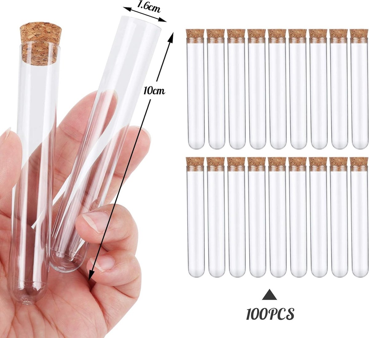 Containers Miniatures Pour Loisirs Créatifs 1 Ensemble De Tubes à Essai Transparents Tubes à Essai Petits Tubes à Tubes Incassables Réutilisables Kit DIY Décoration Tubes à Essai Plastique 16x100mm Lot De 100 Dimensions des tubes à essai : 16 x 160 mm - Tubes à essai avec bouchon - Volume : environ 20 ml, lot avec étiquettes et 30 vis à œillets. Tube à Essai Tubes à... Utilisation polyvalente : les tubes à essai sont parfaits pour les projets de bricolage, dans le cadre de coffrets cadeaux, comme éléments décoratifs ou comme cadeaux lors d'événements tels que les mariages. Idée cadeau personnalisée - Les tubes à essai peuvent être remplis de fleurs séchées, de mélanges d'herbes ou d'épices faits maison, de graines de fleurs ou d'autres objets personnels. Grâce à leur poids léger, ils sont particulièrement adaptés pour le transport. Tubes à essai avec bouchon - Petits tubes à essai en plastique pour fleurs, travaux manuels et cadeaux Respectueux de l'environnement : les petits tubes à essai en plastique sont non seulement pratiques, mais aussi respectueux de l'environnement. Leur réutilisation en fait un choix durable pour les projets de bricolage. Nous sommes synonymes de qualité et ne sommes satisfaits que lorsque vous l'êtes ! Convient pour les expériences, le stockage et les travaux de laboratoire. Cet article est souvent utilisé pour stocker de petits objets, par exemple de très petites perles, des vis, des forets ou du sable de couleur
