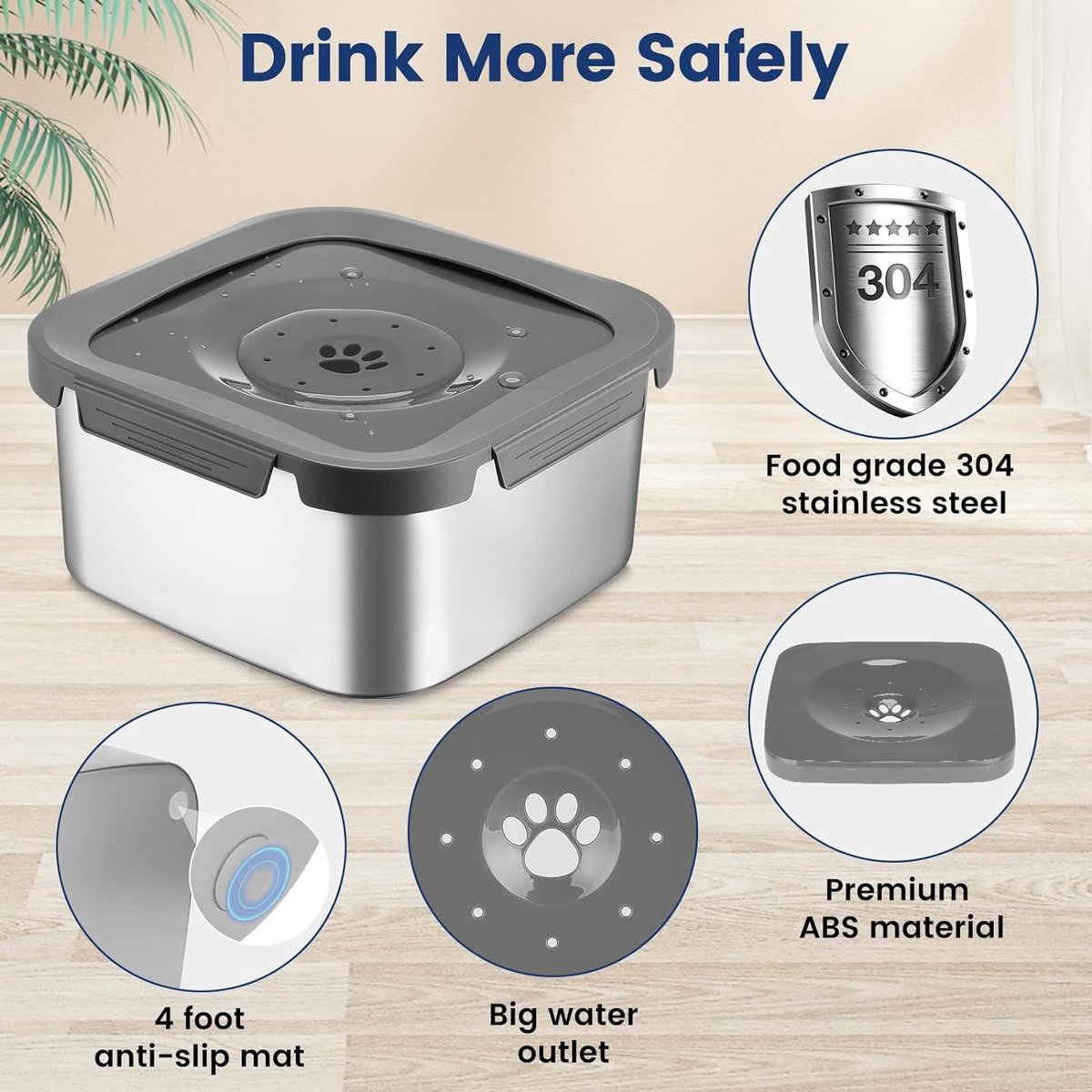 Parfait pour les animaux de compagnie de petite et moyenne taille, il est léger, facile à transporter et à ranger, et une utilisation répandue à la maison ou pendant les voyages de longue distance Gamelle Avec Support Pour Chien Gamelle D'eau Pour Chien De 1 L, Bol En Acier Inoxydable Anti-déversement Avec Disque Flottant, Design à Boire Lentement Pour Chiens De Très Petite, Petite Et Moyenne Taille, Anti-éclaboussures Et Gamelle Anti-éclaboussures Chien Fabriqué avec des matériaux sûrs et inodores, ce bol est également facile à nettoyer et à entretenir. Gamelle d'eau anti-déversement pour chien blanche - MCBOSON : EN STOCK au meilleur prix chez Gamm vert - Large sélection de produits pour prendre soin des animaux - Livraison à domicile ou en magasin - Paiement sécurisé Contenu : 1 gamelle d'eau pour animal de compagnie., Remarques : 1., La couleur de l'article peut varier de celle de la photo, en fonction des paramètres d'affichage et de luminosité de votre ordinateur., 2., Les mesures étant prises à la main, les tailles indiquées peuvent varier légèrement., Mode d'emploi 0 Sa fonction réglable en hauteur et son dispositif flottant intégré garantissent que la bouche de votre animal de compagnie reste sèche Gamelle pour chien, anti-éclaboussures et antidérapante, à boire... Dimensions du produit : environ 24 x 24 x 8,3 cm. Parfait pour tout amateur d'animaux. Prévention des déversements : la gamelle d'eau pour chien dispose d'une fonction anti-renversement avec un design structurel global raisonnable et un coussinet antidérapant, réduisant les accidents causés par le basculement et offrant à votre animal un environnement sûr et sécurisé Gamelle D'Eau Pour Chien Avec Disque Flottant 15 L Antidébordement Caractéristiques : Matériaux : PP, ABS., Poids net : 200 g. Profitez d'une hydratation inodore pour votre animal de compagnie, sans danger pour une utilisation à long terme