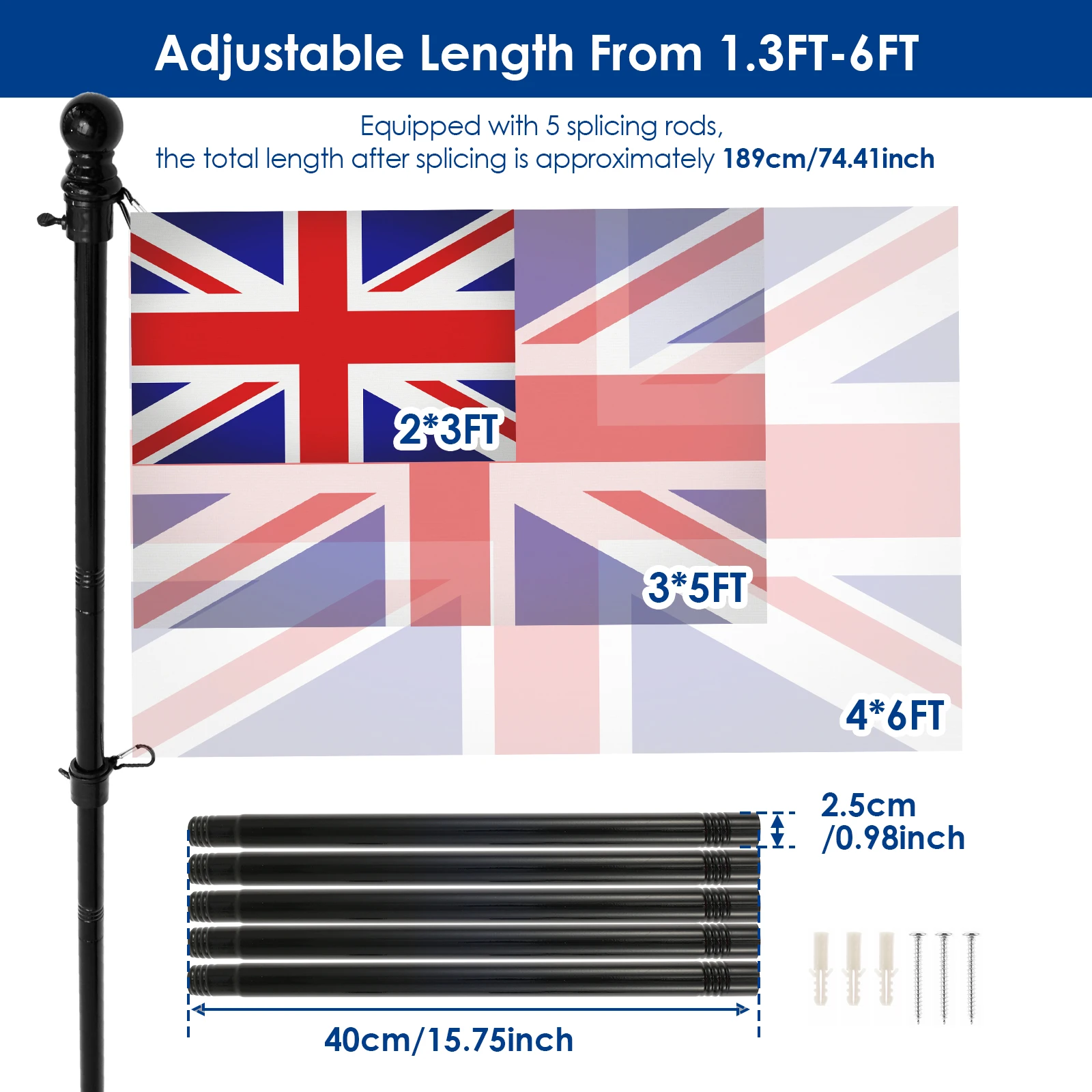 Mât télescopique pour drapeau 4 m 1 POTEAU DRAPEAU portable extensible 6 m pour pointeurs poteau... Kit Montage Drapeau Porche 1 POTEAU DE Drapeau Télescopique 6 M Avec Fonction Rétractable Pointeur Hampe Pour Drapeaux Solution pratique pour le décor extérieur, ce poteau de drapeau télescopique est conçu pour répondre à diverses exigences d'affichage. Longue durée: avec un écran de bannière sécurisé, ce kit de poteau de drapeau est en acier inoxydable robuste pour des conditions éprouvées résistantes aux intempéries et durs de la durabilité testée KIT POTEAU DRAPEAU en bois 5' support nylon blanc 3x5 prêt pour... Sa compatibilité avec les paramètres intérieurs en fait un ajout polyvalent aux fournitures de jardinage, garantissant des performances fiables partout où vous avez besoin pour présenter efficacement vos drapeaux ou bannières. Système de rotation résistante au vent: kit de montage en télescopage du dalle conçu avec un système rotatif résistant au vent et un anneau de déplacement libre qui garantit un mouvement de drapeau ininterrompu et non taillé pour une présentation toujours soignée et attrayante Mise à niveau sans : Polonais de drapeaux de maison pour une configuration sans outil d'expérience en porche et conception sans support pour une installation instantanée, assurer un remplacement rapide des drapeaux et un stockage portable avec facilité d'utilisation dans n'importe quel paramètre extérieur; Idéal pour la gestion facile du mât Utilisations polyvalentes: Conçu pour la compatibilité des jardins et des toit, le poteau de drapeau de jardin robuste assure des performances robustes et une installation adaptable, ce qui le rend idéal pour divers environnements extérieurs sans compromettre la stabilité