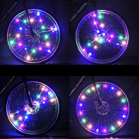 Accessoire Velo 1 Pc - Vert - Lumières LED Pour Rayons De Roue De Vélo Avec Batterie Lumière Velo Pour ceux qui aiment les reflets lumineux beaucoup plus coloré et beaucoup plus visible mais tous en restant sécuritaire, vous retrouvez des éclairages des roues de vélo (rayon de jante, valve /bouchon et pneu Roues lumineuses vélo lot de 4 - Urban Wheelers Changement de couleur des lumières, ce qui peut être amusant pour les vélos d'enfants Double éclairage LED de roue de vélo, avec 30 modes différents 32 RGB... Utilise une pile 1 x CR2032 pour chaque ampoule (fournie) Fonctionnalités Faites voir votre vélo de côté lorsque vous roulez la nuit 1 bouton, 3 modes : Cycle Stroboscope/Flash/Multicolore Se tisse en toute sécurité entre les rayons Lumières changeantes de couleur amusantes pour les vélos d'enfants Utilise 1 pile CR2032 pour chaque lumière (incluse) Contient 2 lumières à rayons LED Votre vélo est bien vu sur le côté lorsque vous roulez de nuit Celles-ci peuvent également être une ajout amusant aux vélos pour enfants.