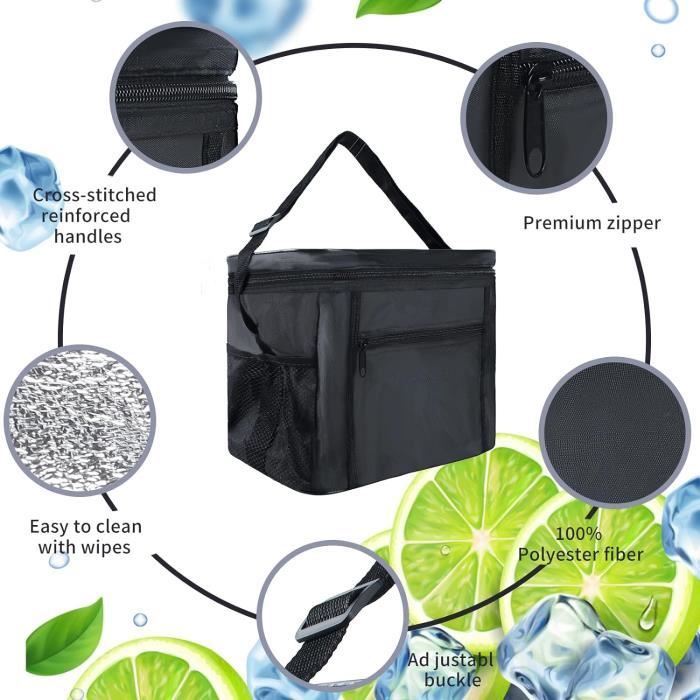 Matériau du sac de stockage à froid pliable] Le sac à glace pour pique-nique est fabriqué dans un matériau Oxford imperméable et résistant à la saleté, durable... Bandoulière réglable pour deux façons de le porter. Large application : le sac isotherme est parfait pour les voyages d'affaires, le travail de bureau, la voiture, les voyages en plein air, la randonnée, le camping, les pique-niques, la plage, la pêche ou les besoins quotidiens de la maison. Glacière Souple WUNZILO 1 Pcs Petite Glaciere Souple Isotherme,Sac Isotherme Sac Glaciere Portable CONCEPTION PRATIQUE : Le sac isotherme comprend un grand compartiment principal avec fermeture éclair unidirectionnelle et 2 compartiments latéraux en filet, deux poches latérales en filet pour ranger les épices, les couverts et d'autres articles. Découvrez nos offres Petite glacière souple isotherme : large sélection de produits au meilleur prix | Livraison gratuite à partir de 10€* | Entreprise française | Paiement 4x possible Matériau : le revêtement de la boîte isotherme est fabriqué en feuille d'aluminium de haute qualité, facile à nettoyer. Sac Repas Lunch Bag Isotherme Sac Lunch Box Petite Glaciere Repas Sac Pique Niques pour Bureau