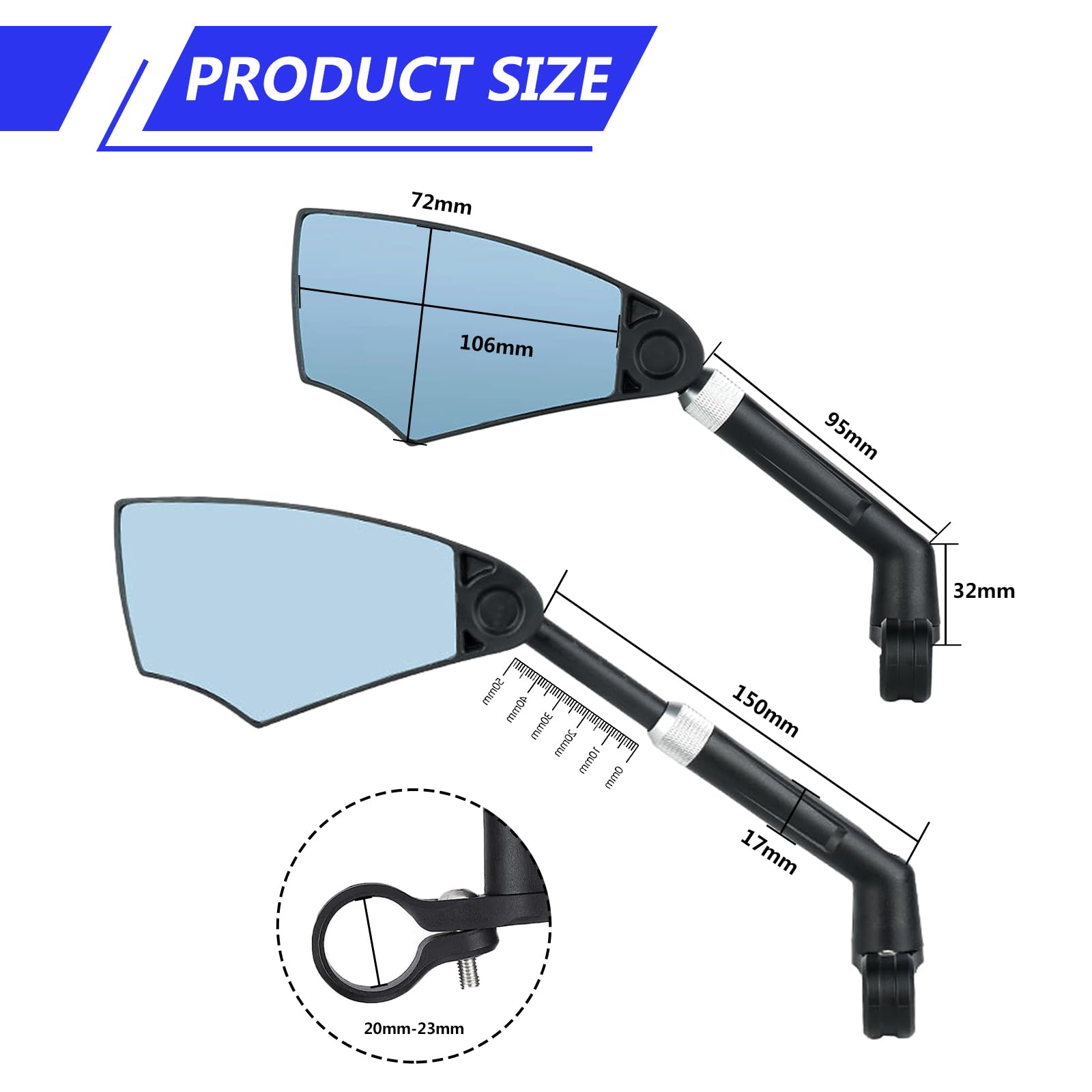 OSUO Retroviseur Velo, 2 Rétroviseur Trottinette Électrique Grand... 【Compatibilité étendue】: Retroviseur velo convient aux poignées plates d'un diamètre intérieur de 16 à 20 mm, adaptées aux poignées ouvertes ou aux trous de coupe. Convient à la plupart des VTT, vélos électriques, vélos de Ville, scooters et véhicules pliants. Rétroviseur Pliable VTT électrique 1 Pièce Réglable 360° Rotatif Rétroviseur Vélo Électrique Verre HD Miroir Vélo Large Champ Vision 【Haute Stabilité】: Le rétroviseur de vélo et la tige du miroir sont fixés par plusieurs vis, ce qui rend le miroir plus solide et ne bouge pas lorsque vous roulez, sans avoir à ajuster fréquemment la position. Rétroviseur Vélo HD, 360° Rotatif Miroirs de Vélo Rétroviseurs de... Remarque: il y a un film protecteur sur le miroir, veuillez déchirer le film protecteur avant utilisation. Rétroviseur Bicyclette HD en verre à lentille convexe pour