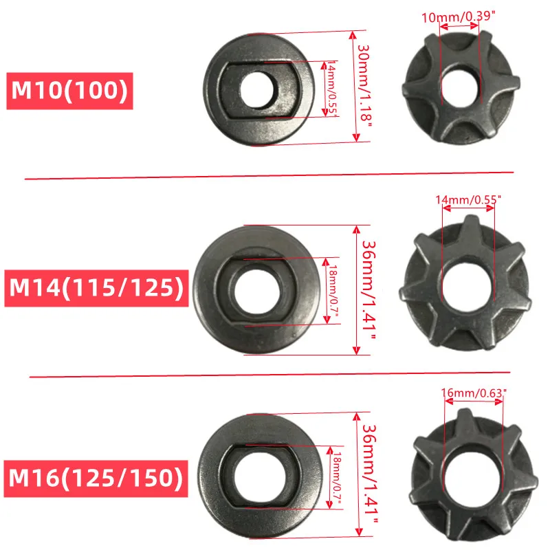 Le pignon M10 convient pour changer la meuleuse d'angle en accessoires... Caractéristiques : Matériau : alliage Bonne qualité : ce produit est fabriqué avec des matériaux de haute qualité, une fabrication exquise, une très bonne qualité et une longue durée de vie. Pignon 7 Dents 6 Dents 3 Dents 1 Pignon De Tronçonneuse M10/M14/M16, Support D'engrenage De Engrenage Meuleuse Portabilité : ce produit est de petite taille et léger, ce qui est très pratique à transporter. ADAPTATEUR UNIVERSEL POUR meuleuse d'angle M14 à M10/M14 à 5/8 11/M16 à... Beau : ce produit est fabriqué avec un savoir-faire exquis et fonctionnel, et l'apparence est très élégante et belle. Engrenage de tronçonneuse M10 / M14 / M16 100/125/150pignon de