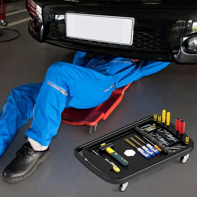 【Table de travail polyvalente et robuste】Avec une charge maximale de 60 kg, cette table de travail dotée d'une base en forme de ‘H’ peut gérer des objets lourds. Chariot Mecanicien COSTWAY Table à Outils 2 En 1 à Roulettes, Réglable En Hauteur Avec Chariot Garage Atelier Mécanique Charge 60kg Description : Ce plateau à outils roulant polyvalent est le complément idéal, offrant la commodité et la flexibilité. Maximisez efficacement votre espace de travail avec cette planche à roulettes d'atelier 2 en 1 innovante. Cette planche à roulettes de montage est conçue pour être polyvalente, que vous soyez confortablement assis ou que vous vous étendiez sous un véhicule pour travailler 【Zone de rangement classée】Gardez vos outils bien organisés avec une zone de rangement classée qui offre suffisamment d'espace pour trier différents types d'outils. Le panneau à outils comprend une grande zone, 15 supports de douilles, 2 plateaux de pièces magnétiques, 2 plateaux de clés et 9 supports de tournevis. Plateau à Outils Roulant 2 en 1 Table de Travail Réglable en Hauteur... Pour le réglage, il suffit d'ouvrir la gâchette vers la gauche, de desserrer la vis en même temps, d'appuyer sur le bouton puis de tirer vers le haut ou vers le bas. La hauteur peut être réglée pour s'adapter à diverses tâches, tandis que le plateau amovible avec verrouillage de sécurité garantit que les outils sont toujours à portée de main. 【8 roulettes fonctionnelles】Doté de 4 roulettes de 8 cm en bas, dont 2 avec freins, ce chariot à outils offre une mobilité supérieure. COSTWAY Établi de Travail avec Roues, Table de Travail Plateau 【Réglage flexible de la hauteur】La hauteur du plateau à outils peut être facilement ajustée de 80 cm au plus bas à 123 cm, parfait pour les mécaniciens qui ont besoin d'un espace de travail personnalisable. De plus, le plateau à outils lui-même comprend également 4 roulettes de 5 cm pour un déplacement facile lors d'une utilisation indépendante.