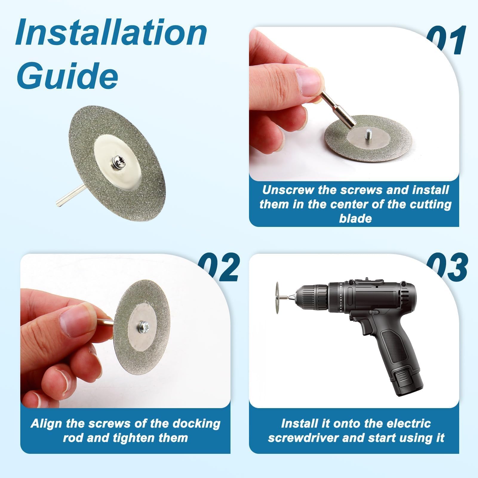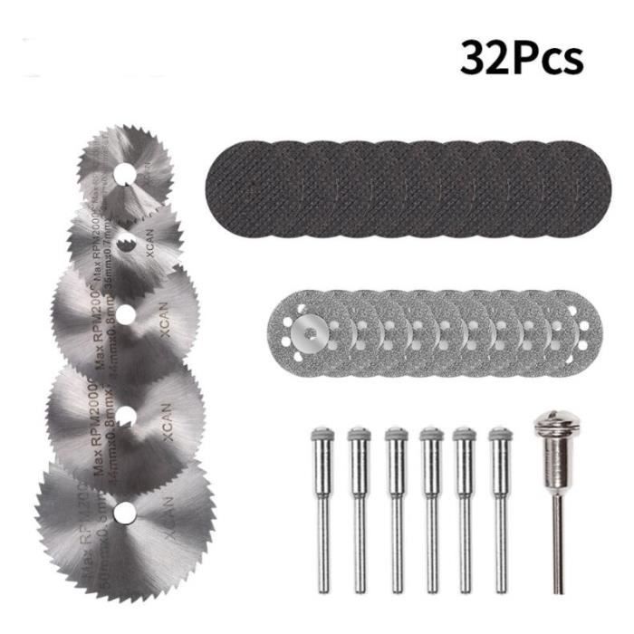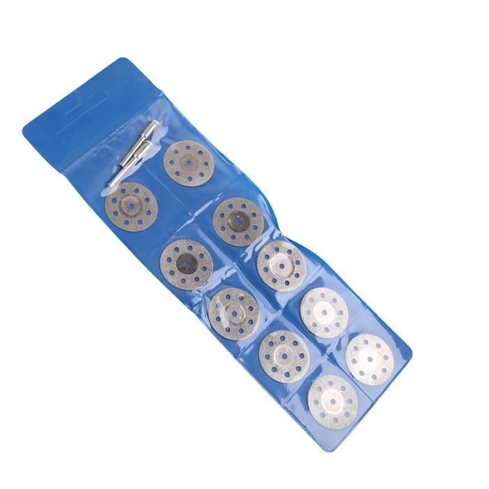 Grâce à leur kerf mince, ils excelleront pour ouvrir des fentes, tracer des motifs délicats, découper des lamelles et créer des détails précis sans détériorer les bords. Le noyau en acier et le revêtement diamant haute densité garantissent une excellente tenue à l’usure ainsi qu’une stabilité accrue à grande vitesse. COUPE PRÉCISE & POLYVALENTE : Disques diamant de 40 mm ultra-fins pour des coupes nettes dans les matériaux durs et cassants : verre, carrelage, céramique, porcelaine, pierres précieuses, jade, résine, plastiques techniques. Optimisez vos travaux de découpe fine avec ce lot de 10 disques diamant de 40 mm, spécialement développés pour offrir une coupe propre, régulière et maîtrisée dans les matériaux durs et cassants. Ces disques de 40 mm de diamètre sont conçus pour offrir des... Permet de réaliser des fentes, lamelles, encoches et découpes de contours avec un minimum de bavures. L’utilisation à l’eau est recommandée pour refroidir, améliorer la précision et prolonger la durée de vie. Lot de 10 disques de coupe diamantés pour outils rotatifs de diamètres de coupe : 16, 18, 20, 22, 25, 30, 35, 40, 50, 60 mm, épaisseur : 0,6 mm... COMPATIBILITÉ OUTILS ROTATIFS : Utilisation simple avec la plupart des outils rotatifs/multitools du marché. conseillée jusqu’à 30 000 tr/min selon matériau et technique. Disques Mini Coupe Verre Carrelage Powertool - Disque De Coupe Diamant De 10,2 Cm - Mini Disque De Coupe De Verre, Meulage De Verre, Pierre Plate Pour Résine, Métal, Bois, Pierre Disques Diamant 40mm Coupe Précise Pour une sécurité optimale, portez des lunettes et des gants, et travaillez avec un guidage stable. Ces qualités en font un choix sûr pour la création de bijoux, la fabrication artisanale, la modélisation, l’ajustage de pièces décoratives ou les petites réparations maison. Contenu : 10 × disques diamant Ø 40 mm + 2 × mandrins. SÉCURITÉ & CONTENU DU PACK : Utiliser avec pression modérée, lunettes et gants ; tester sur chute avant la pièce finale. Convient aux découpes droites, courbes contrôlées et petites ouvertures ; idéal sur mini-perceuses pour travaux de précisio Excellent pour la création de bijoux, l’ajustage de pièces fragiles, la maquette et l’upcycling décoratif. Conçus pour travailler à grande vitesse tout en restant stables, ces mini disques réduisent vibrations et échauffement. Ces disques sont conçus avant tout pour les matériaux minéraux et fragiles ; l’emploi sur métal doit se limiter à des feuilles fines et à vitesse contrôlée. 38 mm) avec queues de , compatibles avec la plupart des outils rotatifs/multitools. Optimisez vos travaux de découpe fine avec ce lot de 10 disques diamant de 40 mm, spécialement développés pour offrir une coupe propre, régulière et maîtrisée dans les matériaux durs et cassants. Qu’il s’agisse de verre, carrelage, céramique, porcelaine, pierres précieuses, jade, résine ou plastiques techniques, vous obtenez des résultats constants et fiables. DURABILITÉ & STABILITÉ : Noyau acier robuste et revêtement diamant haute densité pour une longévité accrue, une dureté élevée et une coupe régulière. 10 Pièces 40mm Disque Diamant de Coupe, Disques à Tronçonner Idéal pour les séries répétées et les matériaux sensibles aux fissures
